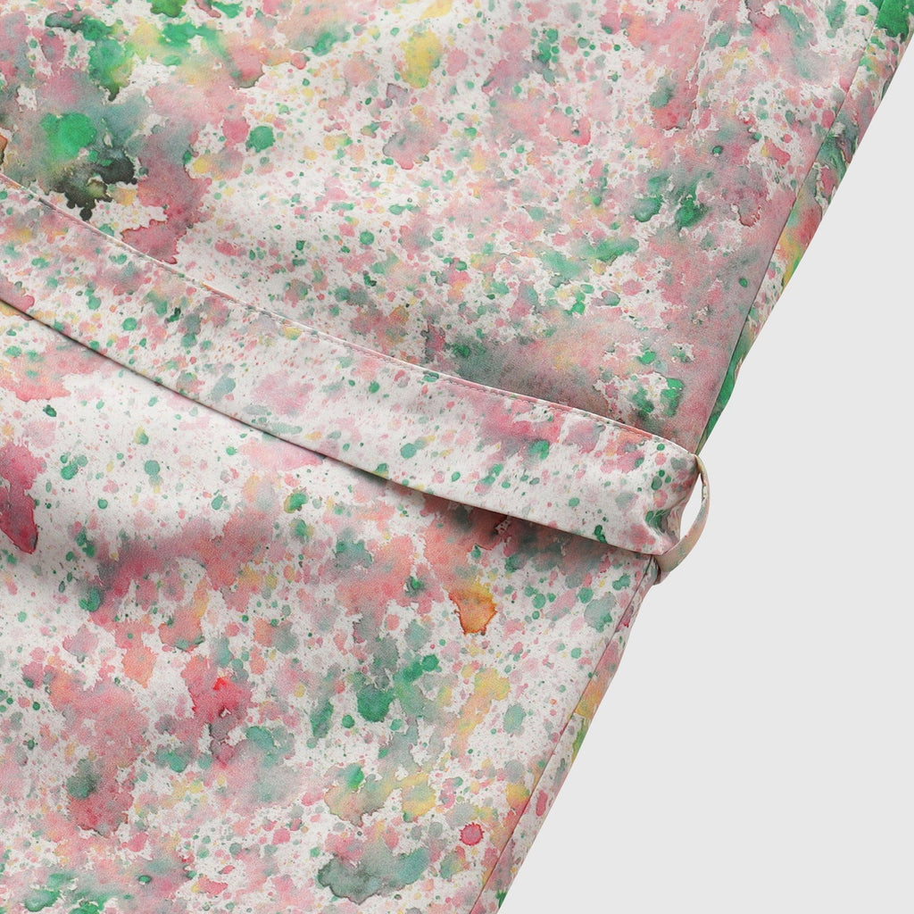 | 注意事項 | ・単独洗いをしてください ・この製品は、生地の特性上縮みますので洗濯時はご注意ください ・濡れたままの放置や、長時間の浸漬はしないでください ・タンブル乾燥禁止 ・着用や洗濯時の摩擦により、プリントが損傷することがあります。ご注意ください ・当て布をあててください |