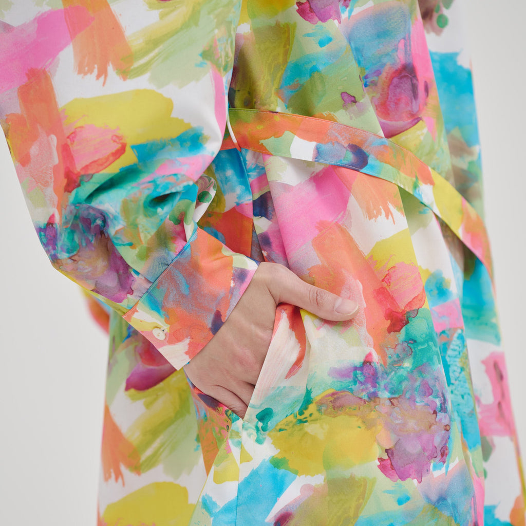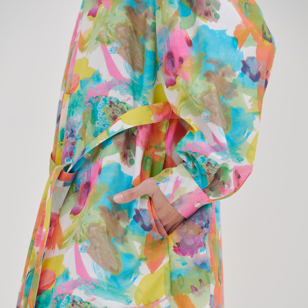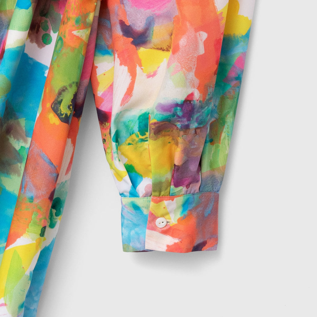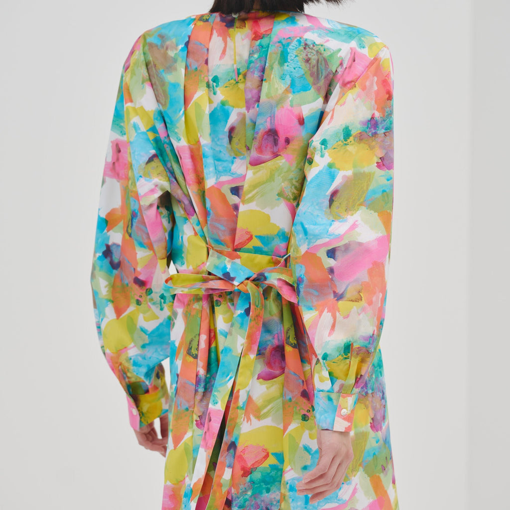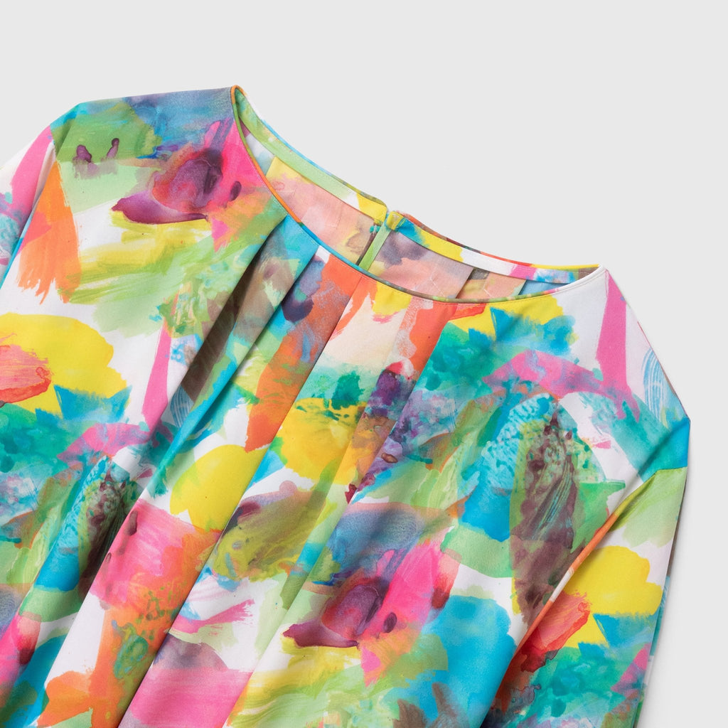 異彩が放つ魅力を感じられながらも、合わせるアイテムを選ばない絶妙なアートをセレクトしました。デイリーシーンをさりげなく華やかに彩るワンピースです。環境に優しいリサイクルポリエステル繊維のスパンブロード生地を使用し、先シーズンより少し光沢を抑えた生地感に仕上げました。パーティなどのおでかけにも、日常のおしゃれ着にも馴染みます。リラックス感がありながら上品な印象が魅力です。