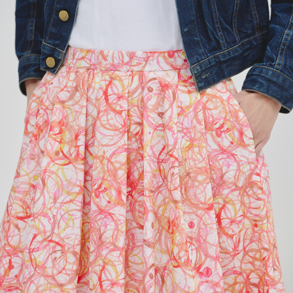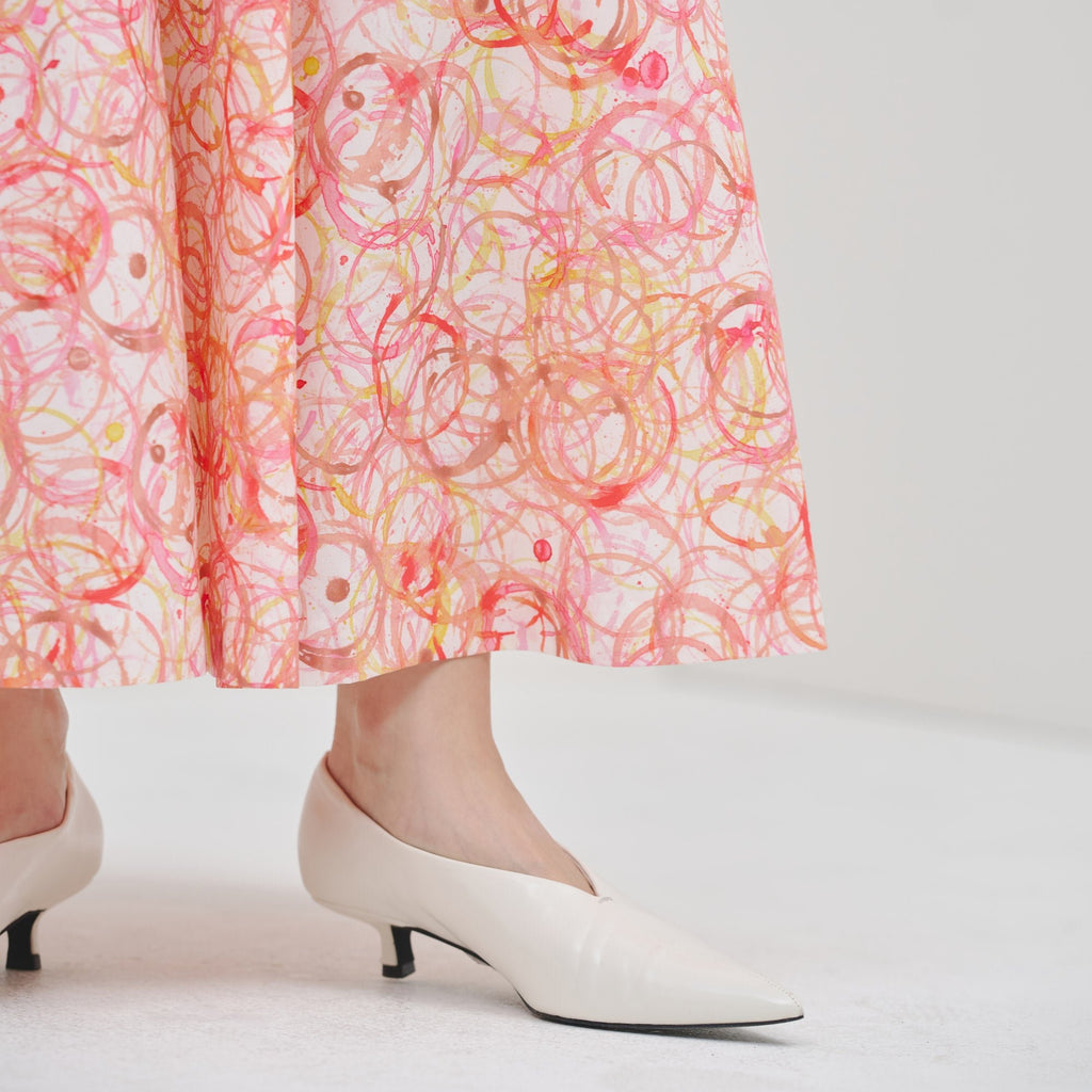 アートがふんわりと揺れる、大人のためのフレアスカートがバージョンアップ。ハリのある生地感で、オフィスカジュアルにもおすすめです。さらっとした肌心地の素材と、総ゴムのウエストで快適な着心地にもこだわりました。ご自宅で手洗い可能なお手入れのしやすさもポイントです。