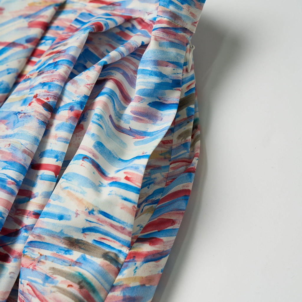 アートがふんわりと揺れる、大人のためのフレアスカートがバージョンアップ。ハリのある生地感で、オフィスカジュアルにもおすすめです。