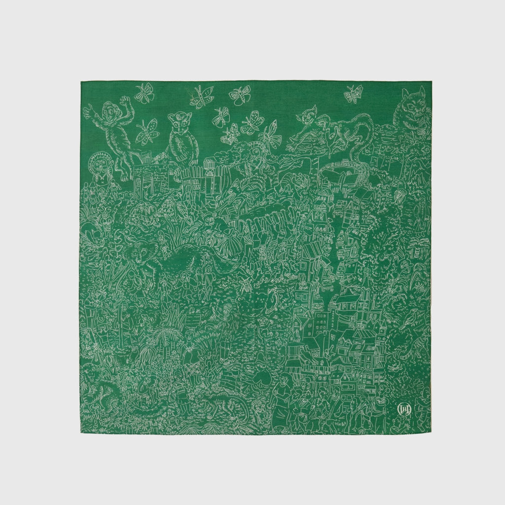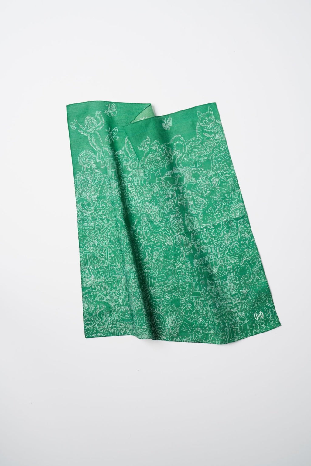 100%オーガニックコットン素材により、やわらかな使い心地と耐久性を実現。さらにアートの迫力や繊細さを忠実に引き出すためのトリミングサイズにこだわりました。やわらかな肌触りの大判サイズで、首元に巻いたり、お手持ちの額縁に入れて飾ったりと使い方は自由自在です。