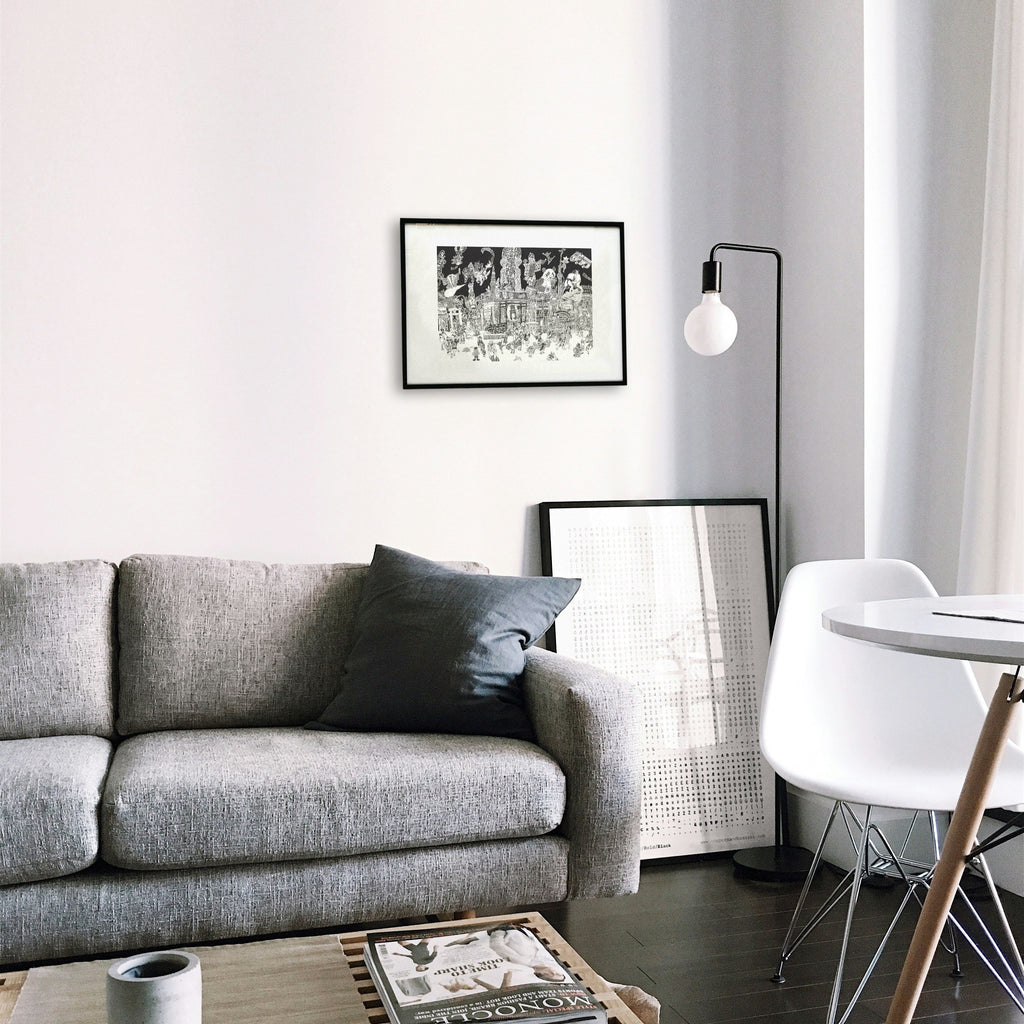De plus, l'œuvre n'a pas été recadrée en règle générale et a été agencée de manière à ce que vous puissiez profiter du charme de l'œuvre originale jusqu'aux bords. L'espace supplémentaire permet d'exposer facilement plusieurs œuvres d'art uniques côte à côte.