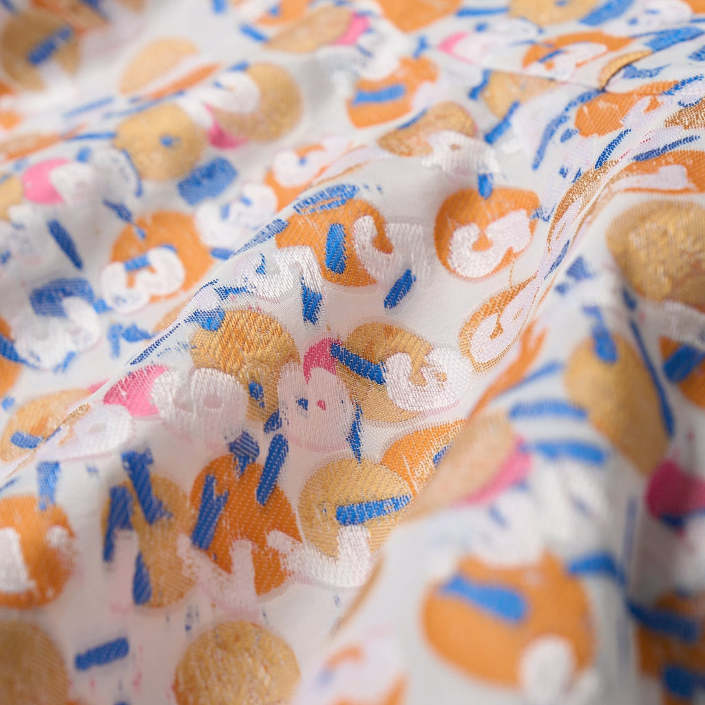 中川 ももこ(Momoko Nakagawa)の原画作品が持つ、塗料の盛り上がりや奥行きをそのまま表現したいという想いから生まれたジャカード織りのアイテム。織りも縫製もメイドインジャパンの特別なアイテムです。