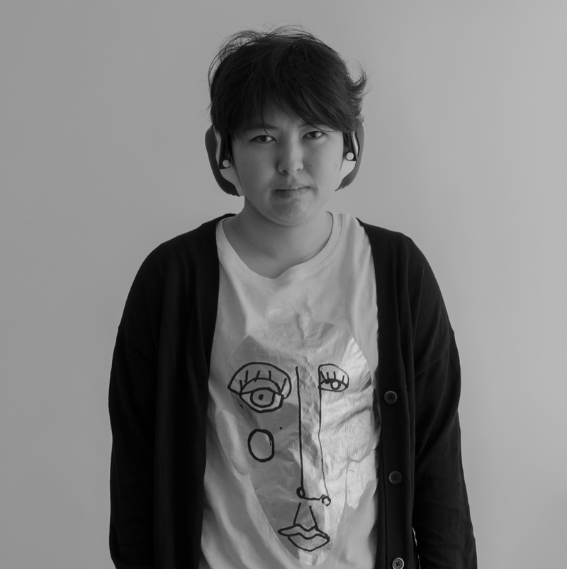 学校に行けず暇を持て余していた時期に、作家の母が「マルを描いて」と紙とペンを渡したのが創作のはじまり。マルというモチーフが彼女のなかでピタリとはまり熱中するようになる。マルを描き始めて5年になるが、近年はマル以外のモチーフも描くようになり、マル、サンカク、シカクのモチーフを大きなカンバスに日々飽きることなく描き続ける。コミュニケーションとして発する言葉はわずかだが、頭に浮かんだであろう言葉を繰り返し呟き、言葉と一緒に作品が生まれることもある。