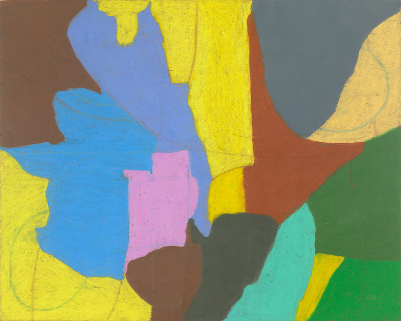 ⾝近にあるものや、街を⾏き交う乗り物たち。⽇常にあるモチーフを写真と向き合うことで⼀度「分解」し、豪快 な下絵として紙の上に現す。その線を尊重したり、あえて裏切ったりしながら、数⾊のクレヨンで⾊を重ねてい き、写真の⾊味に縛られない、彼独⾃の⾊彩が差し込まれる。お気に⼊りの⾊を⼿に取り、ぐりぐりと塗り込む動 きには迷いがなく、その表情には描くことの確かな⼿応えがにじむ。「みんなに⾒てもらえるものを描くこと」。 そう語る⾔葉の奥に、描くことを通して世界とつながる歓びがある。