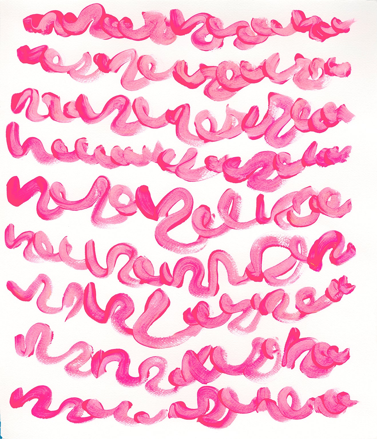 東京都内特別支援学校在学中。お寿司とゲーム(マリオカート)と、お料理すること、絵を描くことが大好き。シール、スタンプ、ドリッピングなど様々な絵作りをするなか、一番気に入っているものは、古代なのか宇宙なのか未来の言語なのか、彼女なりのタイポグラフィをノート一面に書き綴っているものである。