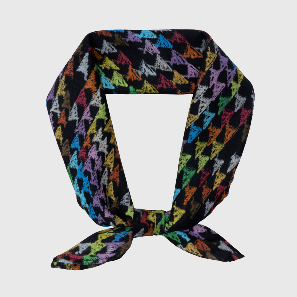 縦55cm×横55cmのサイズ感と素材で、スカーフよりも気軽に身に着けられるバンダナ。首元に巻いてもコンパクトなので、ほどよいアクセントとして活躍します。