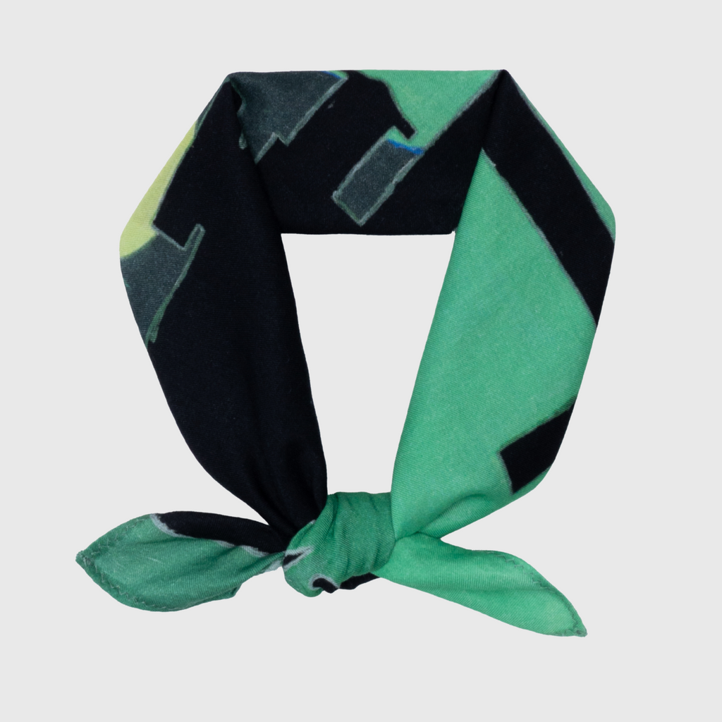 程よいサイズ感が魅力のレーヨンコットンシルク製のバンダナ。首元に巻いたり、髪にシュシュのように巻いたり、バッグのチャーム代わりにしたりと、自由にアレンジを楽しめます。ご自宅で手洗い洗濯が可能です。