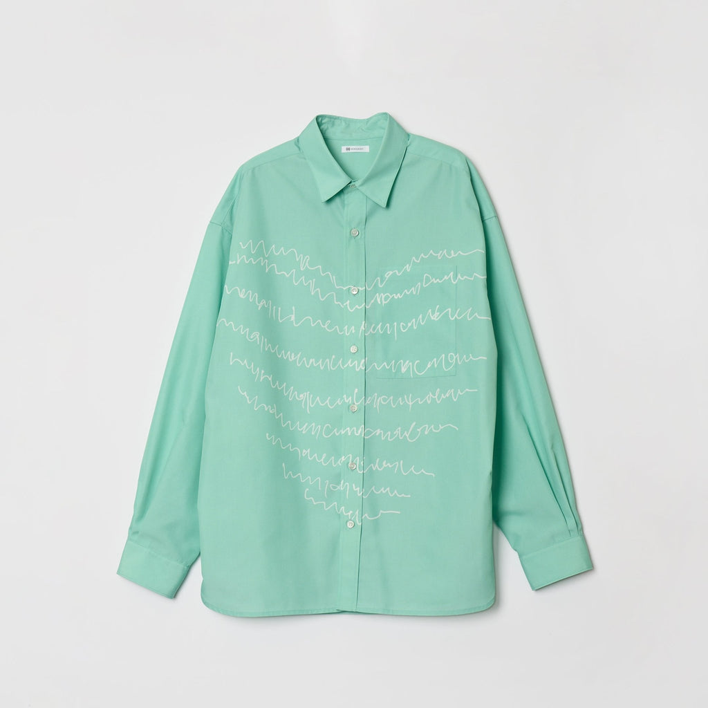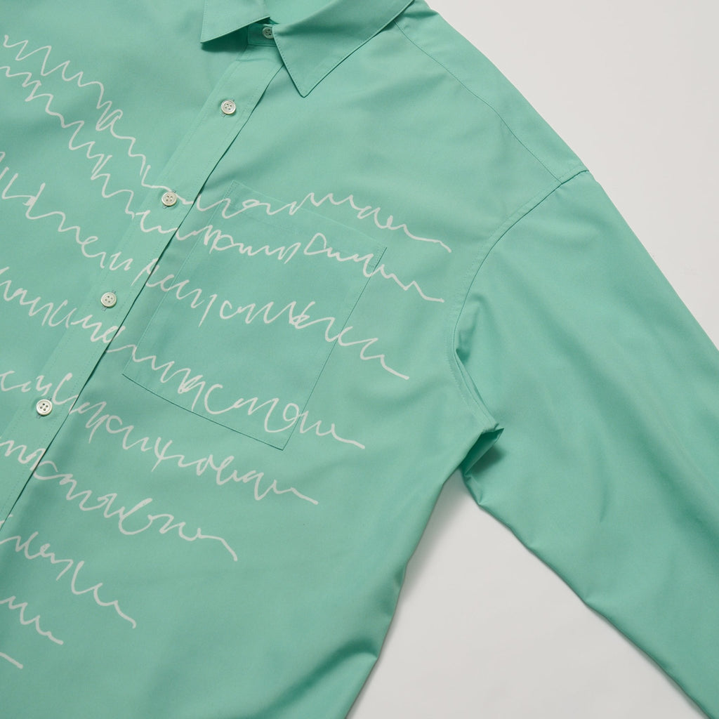 フロントにアートを配置した軽やかなパステルカラーの長袖シャツ。さらっとした肌触りと柔らかな落ち感で、汗ばむ季節も爽やかな印象に。
