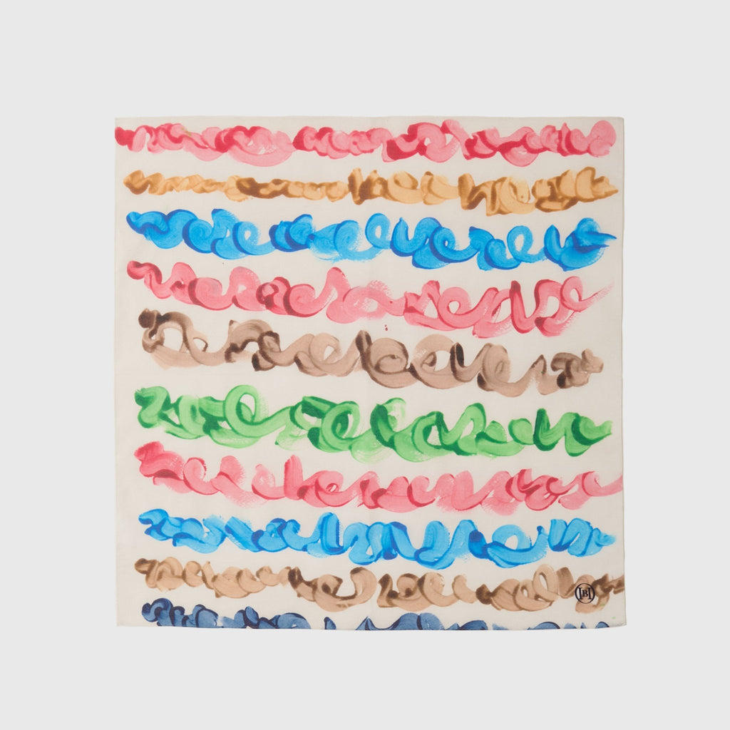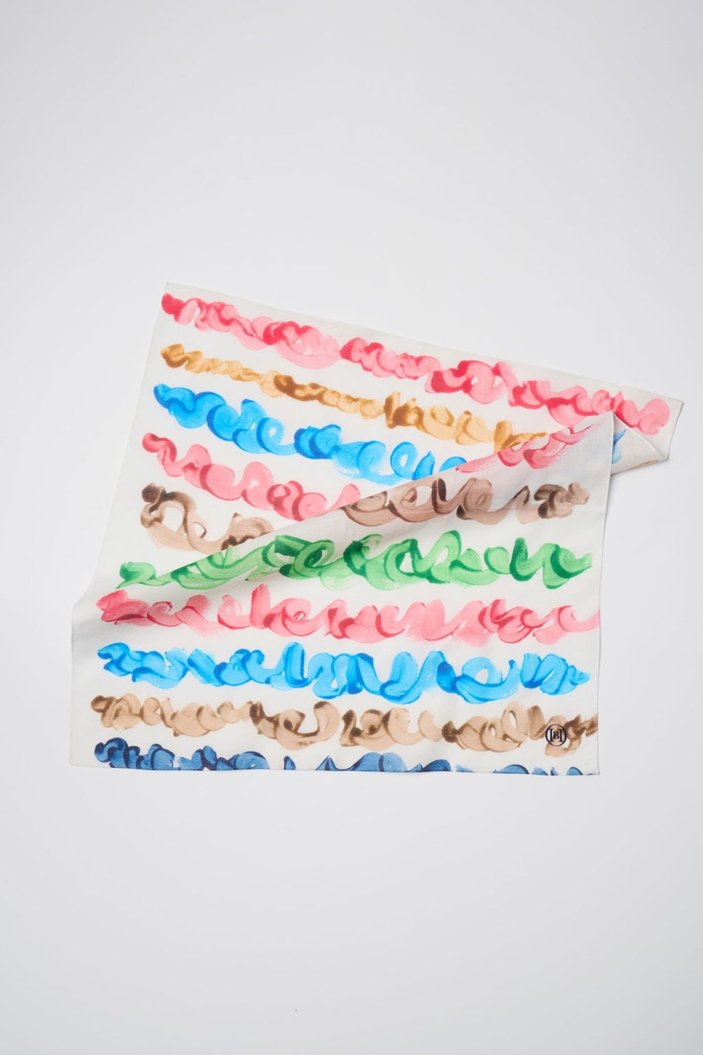 100%オーガニックコットン素材により、やわらかな使い心地と耐久性を実現。さらにアートの迫力や繊細さを忠実に引き出すためのトリミングサイズにこだわりました。やわらかな肌触りの大判サイズで、首元に巻いたり、お手持ちの額縁に入れて飾ったりと使い方は自由自在です。