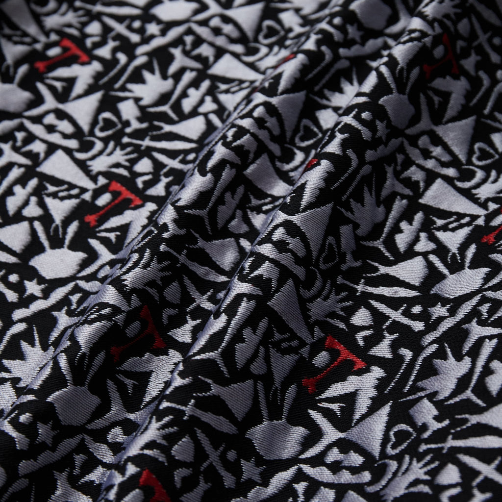 輪島 楓(Kaede Wajima)が生み出す切り絵の存在感を活かしながら、忠実に再現するためにジャカード織りを採用。ゼロから設計した、このアイテムのためだけのジャカード生地が異彩の新たな魅力を引き出します。