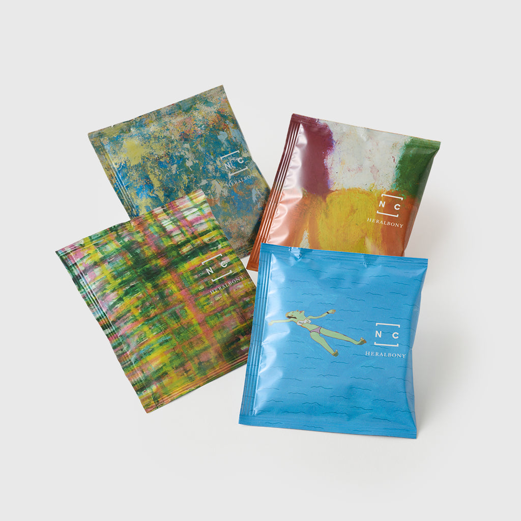 ドリップバッグのパッケージデザインとコースターには、コーヒーの味わいともマッチする、個性豊かな4つのアートを起用しました。中にはコーヒーが好きな作家さんもいらっしゃいます。穏やかな色彩の中にエネルギーを感じるパッケージは、ギフトにもおすすめです。