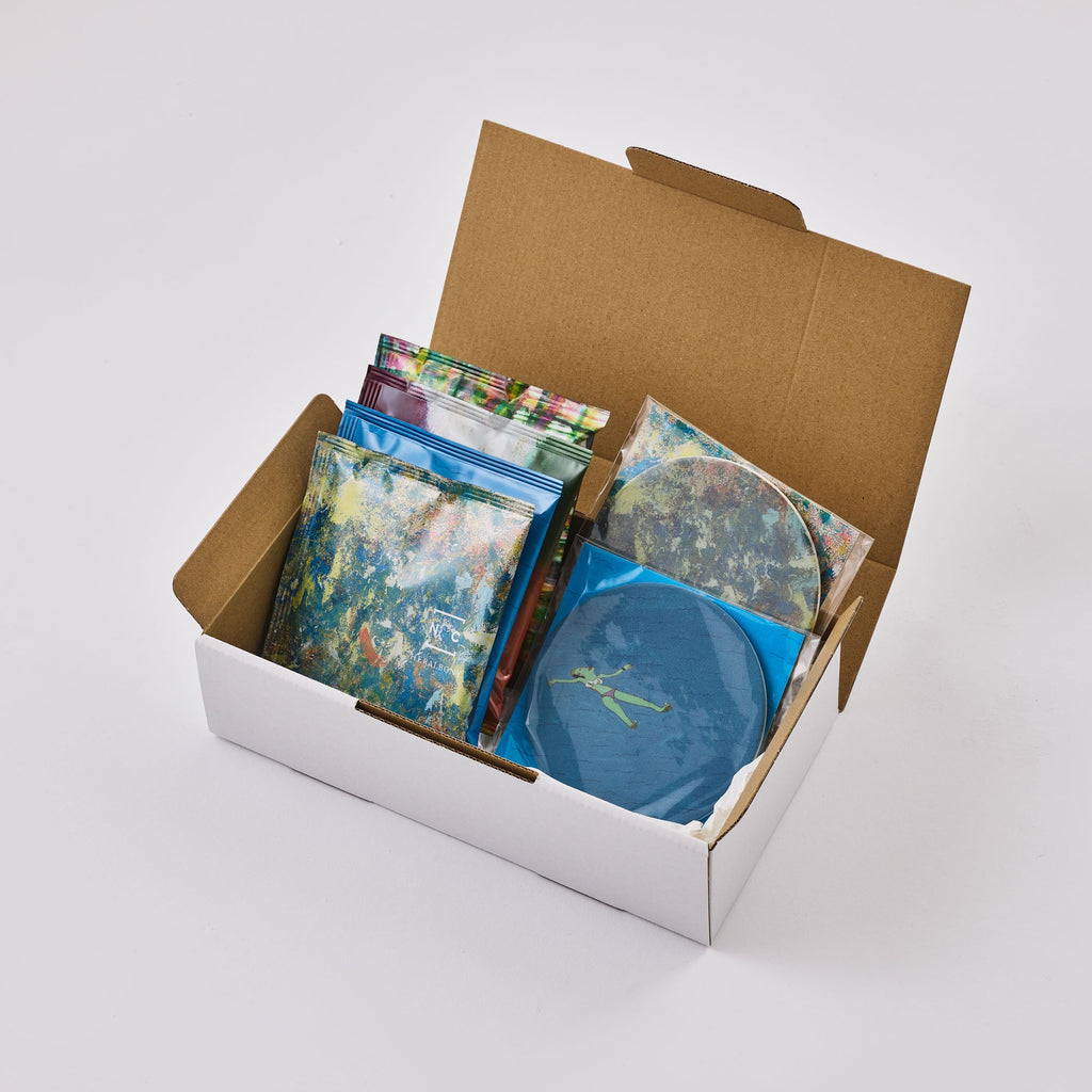 ドリップバッグコーヒーとアートコースターがセットになったギフトBOX。ドリップバッグは世界中のファンに愛される岩手・盛岡の「Nagasawa COFFEE」とコラボレーションしたオリジナルブレンドです。ドリップバッグと同じアートを起用したコースターは洗って何度もお使いいただけます。香り豊かなコーヒーと鮮やかなアートが紡ぐひとときをお楽しみください。