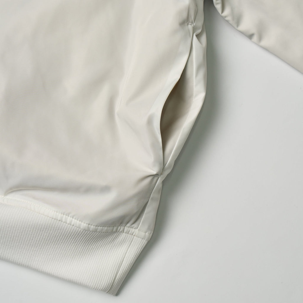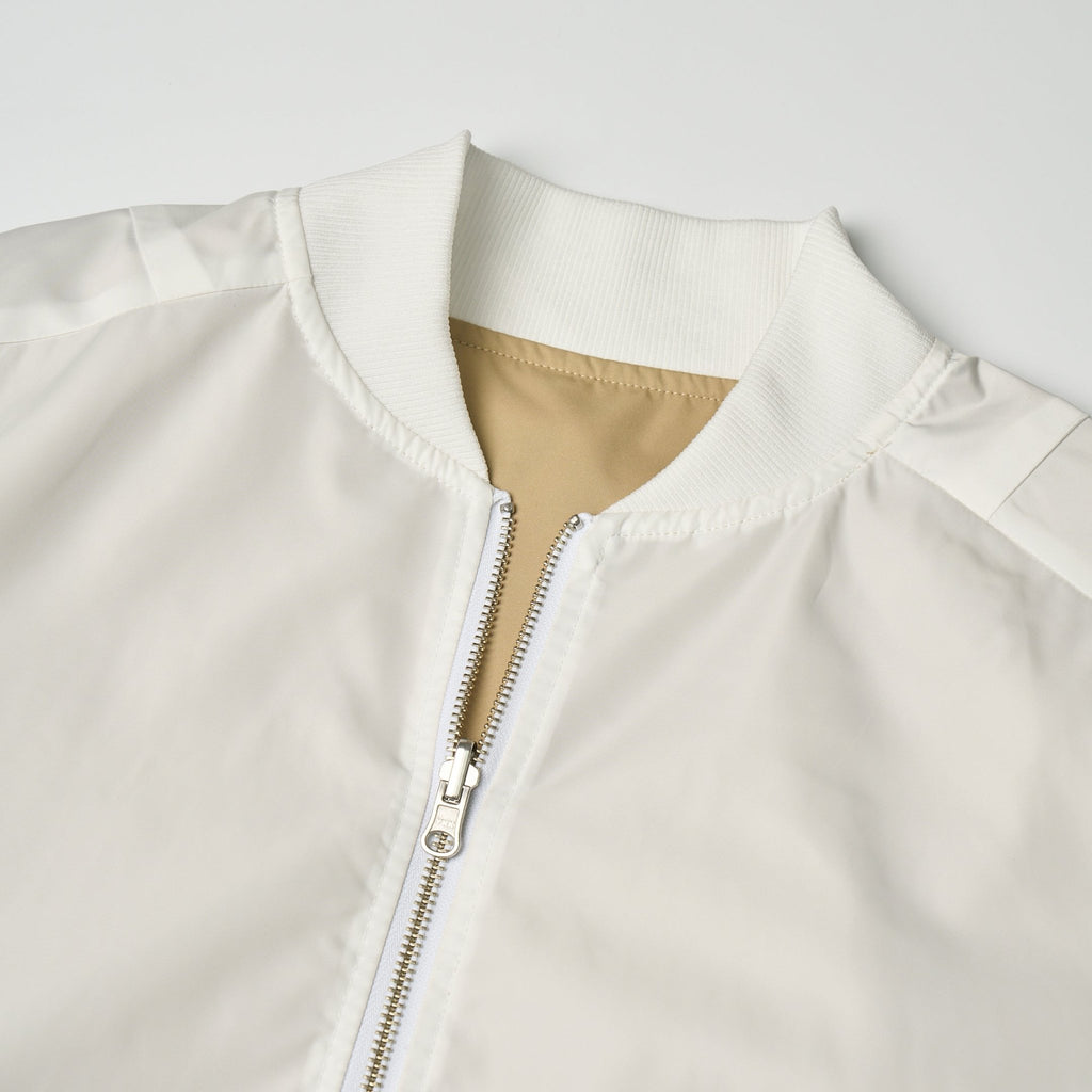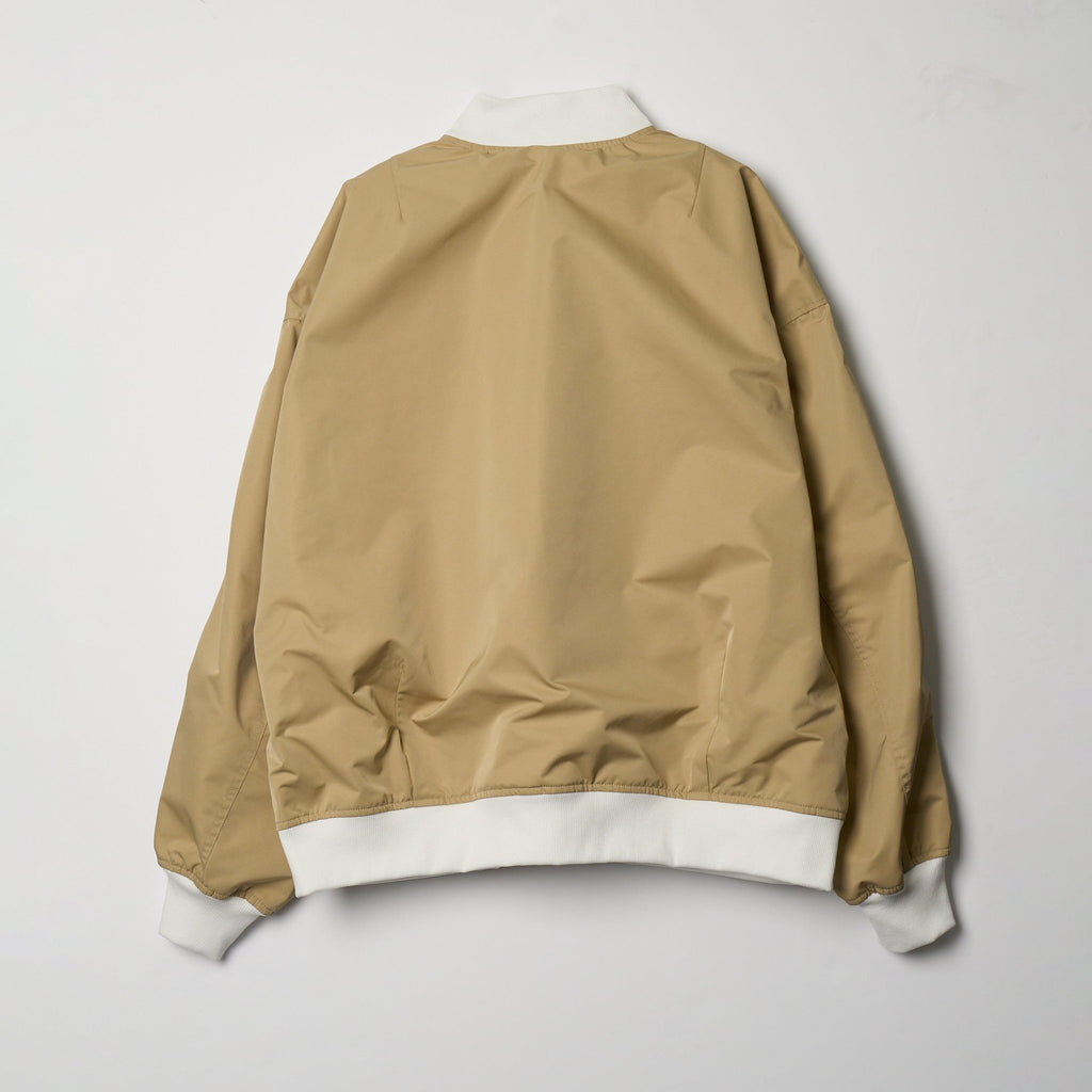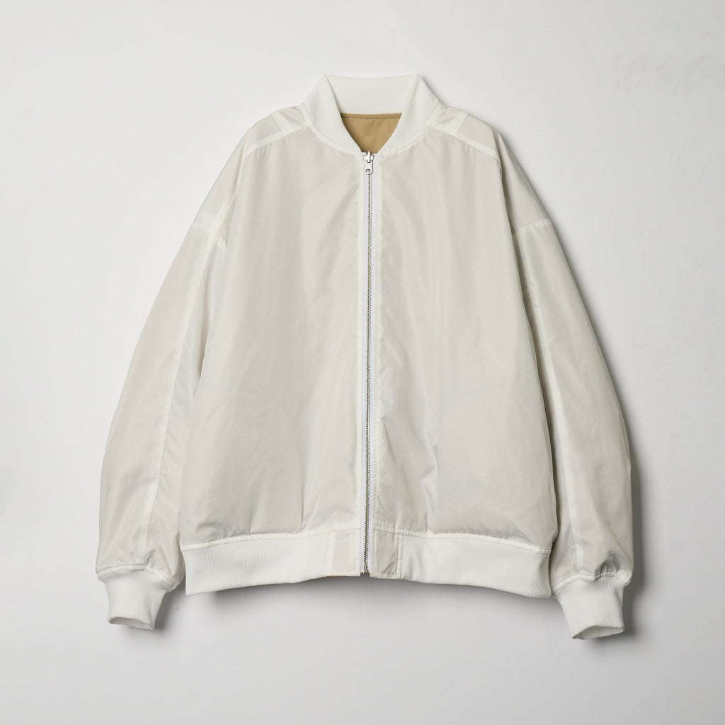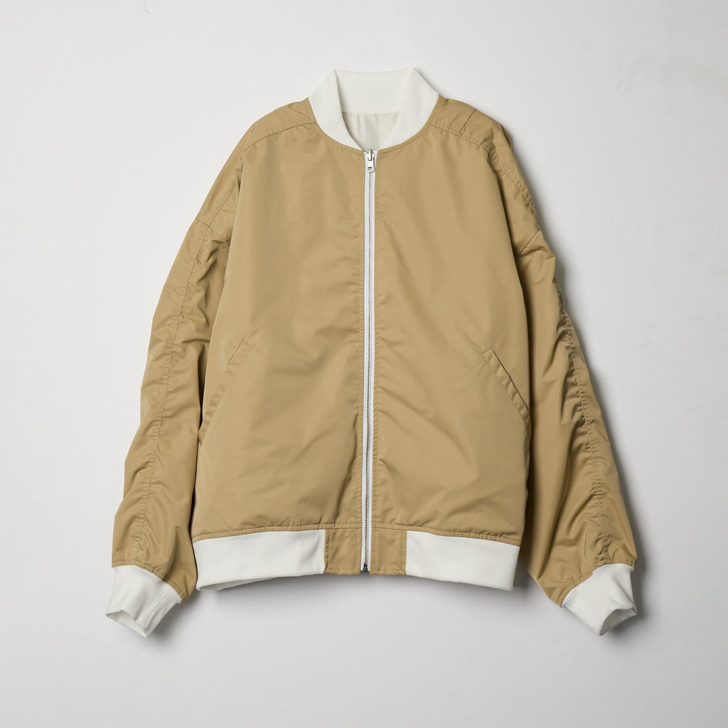 一着でふたつの顔を楽しめる、リバーシブルタイプのブルゾン。春らしい爽やかカラーと、バックにあしらった中尾 涼(Ryo Nakao)の疾走感あふれるアートの異なる表情が、スタイリングの幅を広げてくれるアイテムです。ミニマルなデザインとビッグシルエットにで、羽織るだけで旬な雰囲気を演出します。