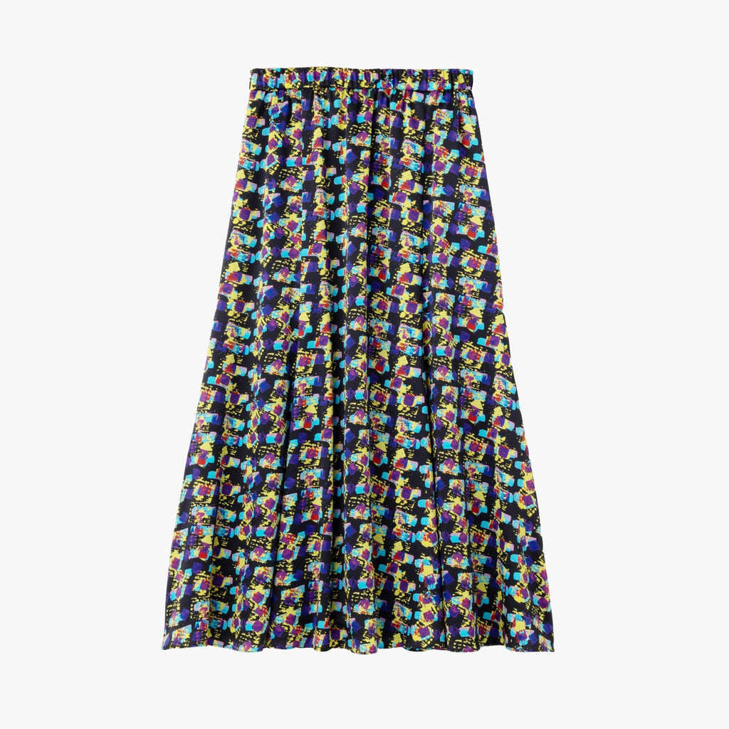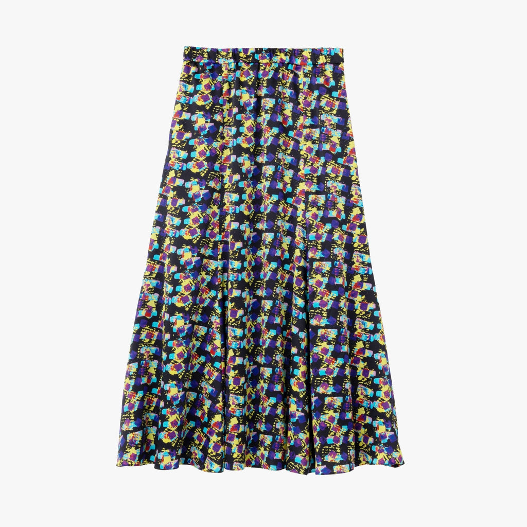 落ち着いたカラーリングのアートは、ジャケットやジレとも相性抜群。ビジネスシーンにも調和する、大人のスタイリングに合わせやすいスカートです。