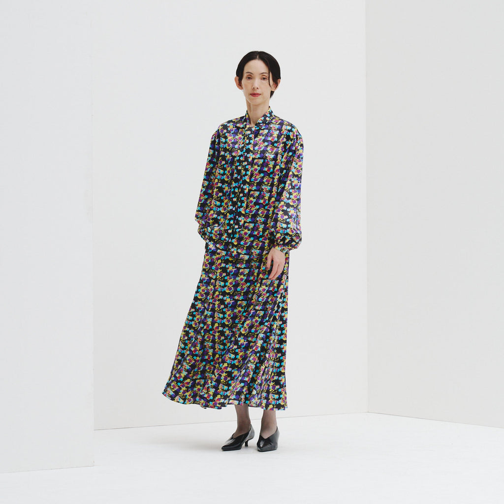 同じアートを起用したボウタイブラウス・シャツブラウスとセットアップが可能です。よりドレッシーな印象となり、登壇や式典などのフォーマルな場でも華やかな印象に。
