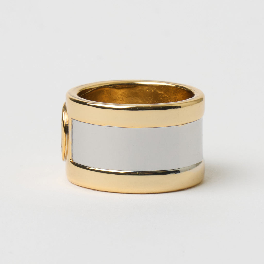 2つのカラーが混じり合うリングの中央にはHERALBONYのロゴマークを配しました。重厚な存在感で、スタイリングを格上げしてくれるスカーフリングです。