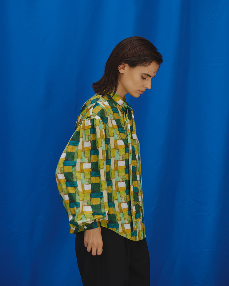 "作家・中川ももこ(やまなみ工房所属)の作品「タイトル不明」を起用した、オリジナルアートショッパーをご用意しました。