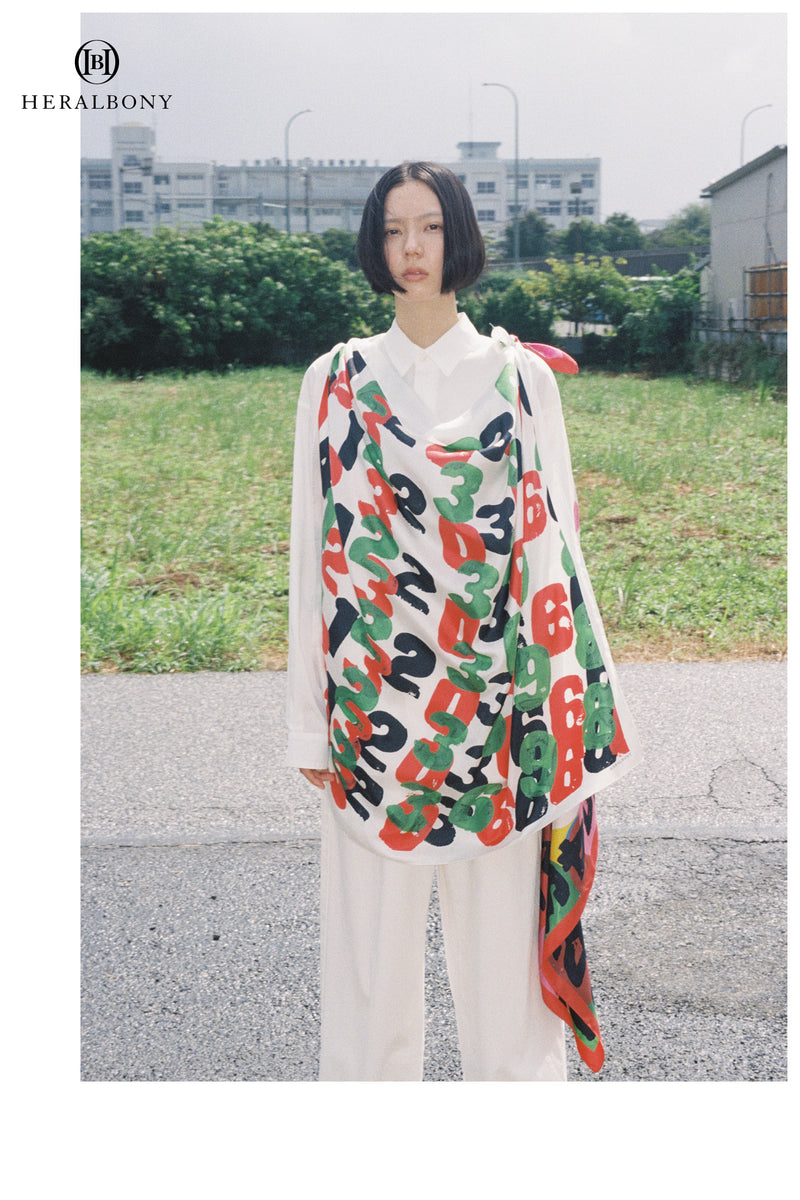 スカーフを纏いながら、日常と非日常のあわいを漂う。