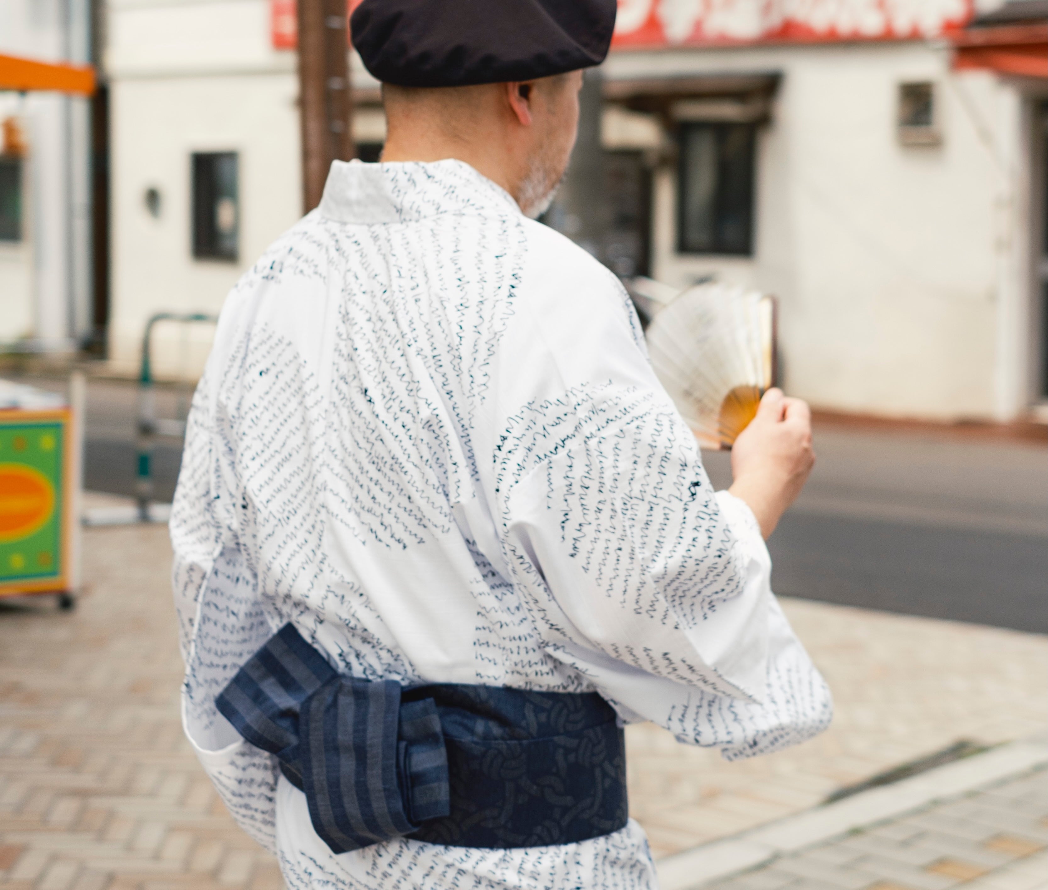 ヘラルボニーのオリジナル浴衣の装いにひときわ目を引いたのが、トレードマークのベレー帽。