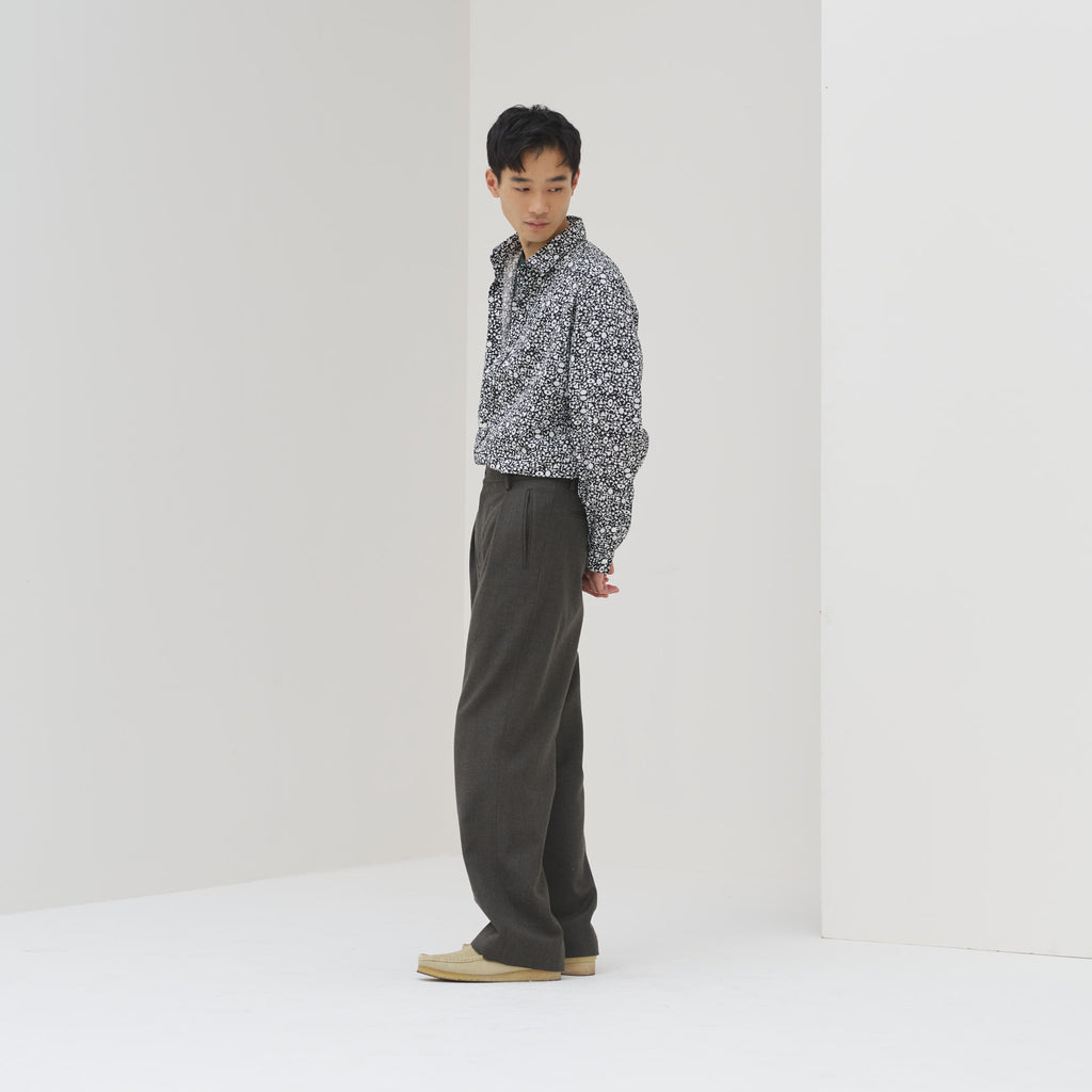 シックなカラーリングで大人も着こなしやすい長袖シャツ。身体のラインを拾わないユニセックスなシルエットで、インナーにニットを着たり、フロントを開けて羽織として着たりなど、幅広いスタイリングが可能です。