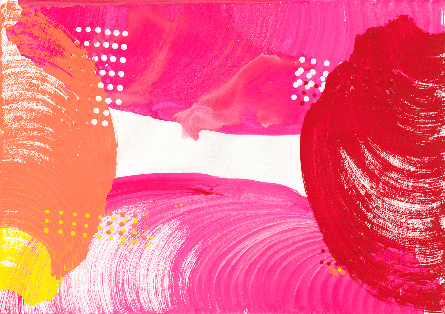 様々な色でいくつも描かれた扇形と点の模様。複数の扇形を小さいほうから順に重ねながら描いていき、その上に溝引き棒で3列の点を打つ。気持ちが穏やかな時ほど、きれいな筆使いで整列された点になる。はたして、イメージしているものがあるのか、それとも動きを楽しんでいるのか。一体全体、何を感じて描いているのかは彼にしか分からない。自室の壁紙は四方八方どこを見ても自身が描いたロゴやアニメキャラクターで埋め尽くされている。