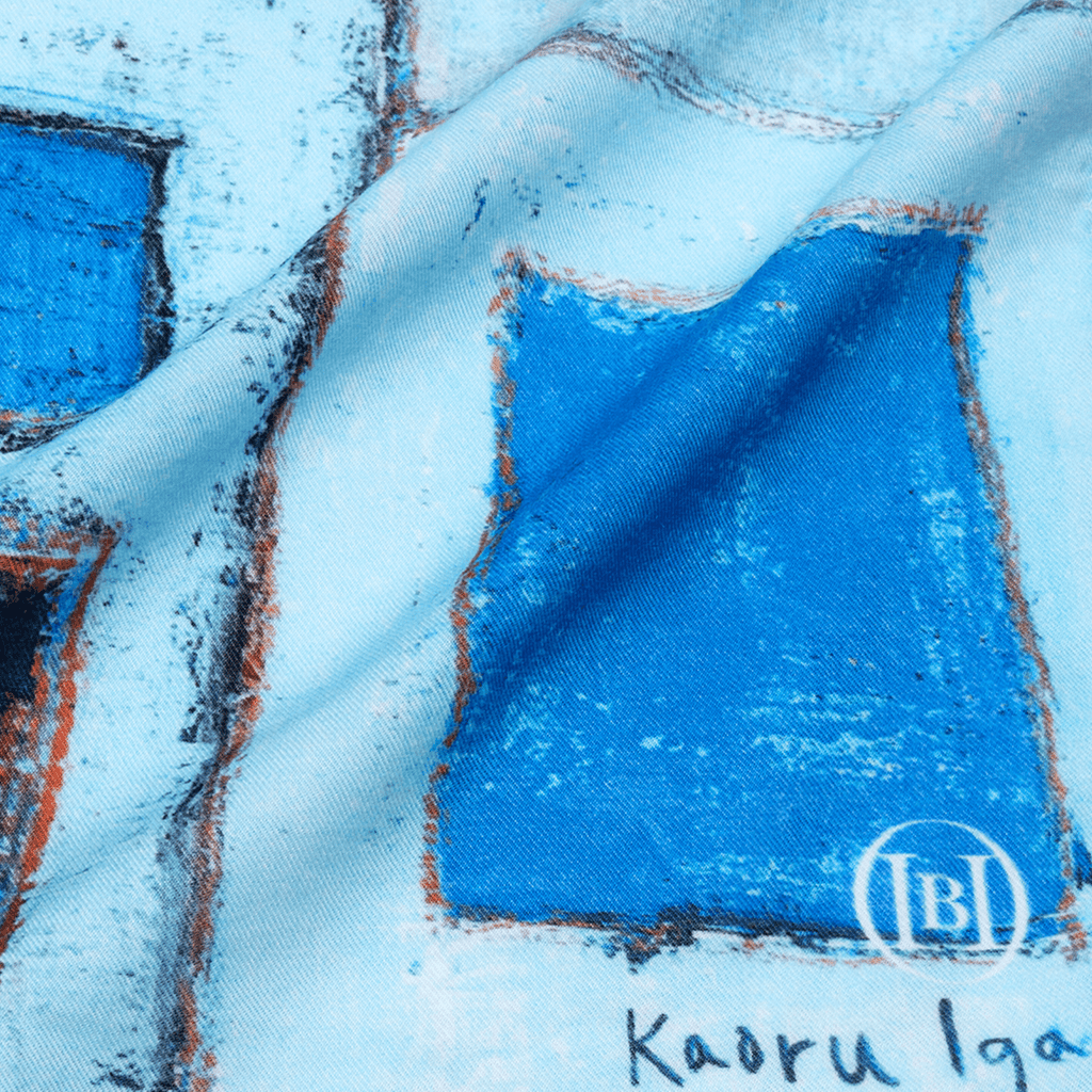 レーヨンコットンシルクの柔らかな手触りとツヤ、そして作家のエネルギーがこめられたアートはギフトにも最適です。幅広いシーンで使え、ライフスタイルを問わずまといやすいアイテムです、
