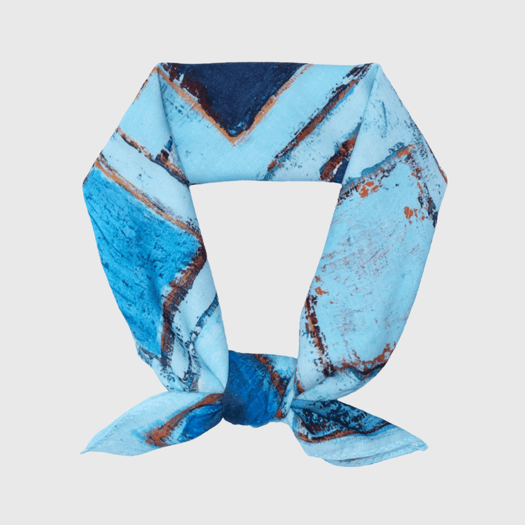 程よいサイズ感が魅力のレーヨンコットンシルク製のバンダナ。首元に巻いたり、髪にシュシュのように巻いたり、バッグのチャーム代わりにしたりと、自由にアレンジを楽しめます。ご自宅で手洗い洗濯が可能です。