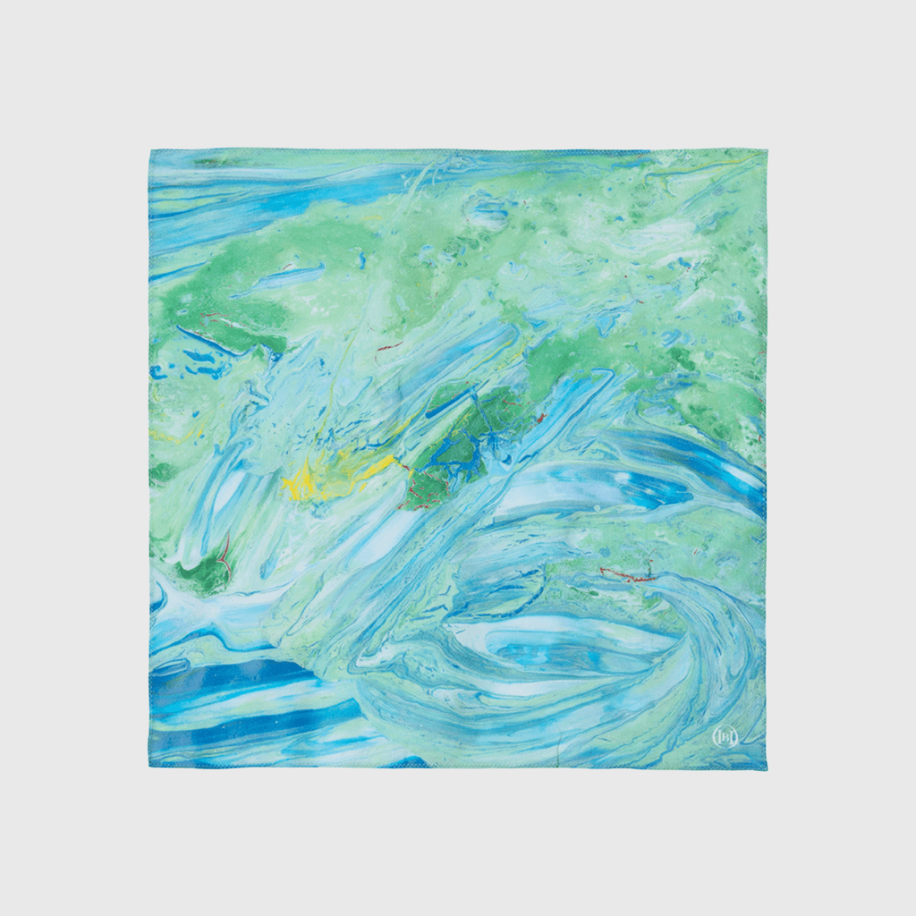 レーヨンコットンシルクの柔らかな手触りとツヤ、そして作家のエネルギーがこめられたアートはギフトにも最適です。幅広いシーンで使え、ライフスタイルを問わずまといやすいアイテムです、