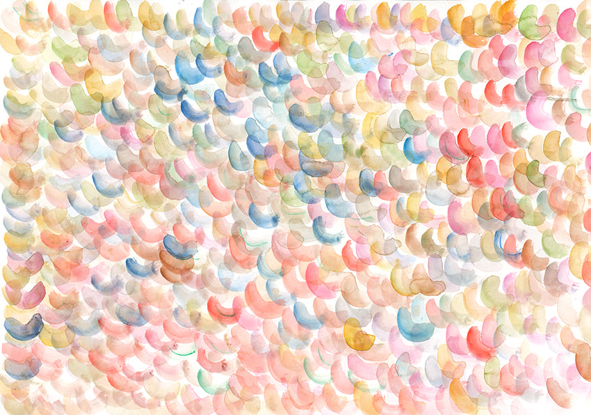10歳のサマーキャンプで水彩画と出会って以来、自宅で「1日1枚」絵を描くのが彼の日課 。具体的なモデルはなく、その日の心の中にあるイメージに応じてパレットから数色の組み合わせを選び、ジェリービーンズや雨粒を彷彿とさせる水々しいタッチで大判画用紙を埋め尽くしていく。 色相が濁らないよう、米国製の透明水彩絵の具を愛用している。完成した絵を見た人が「きれいねー」と伝えると、嬉しそうに「きれいねー」とオウム返しする。余暇にはボストンのアートクラスで、さをり織り、ピアノ、ダンスを楽しんでいる。