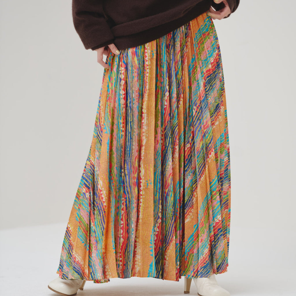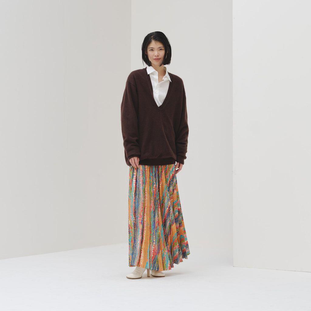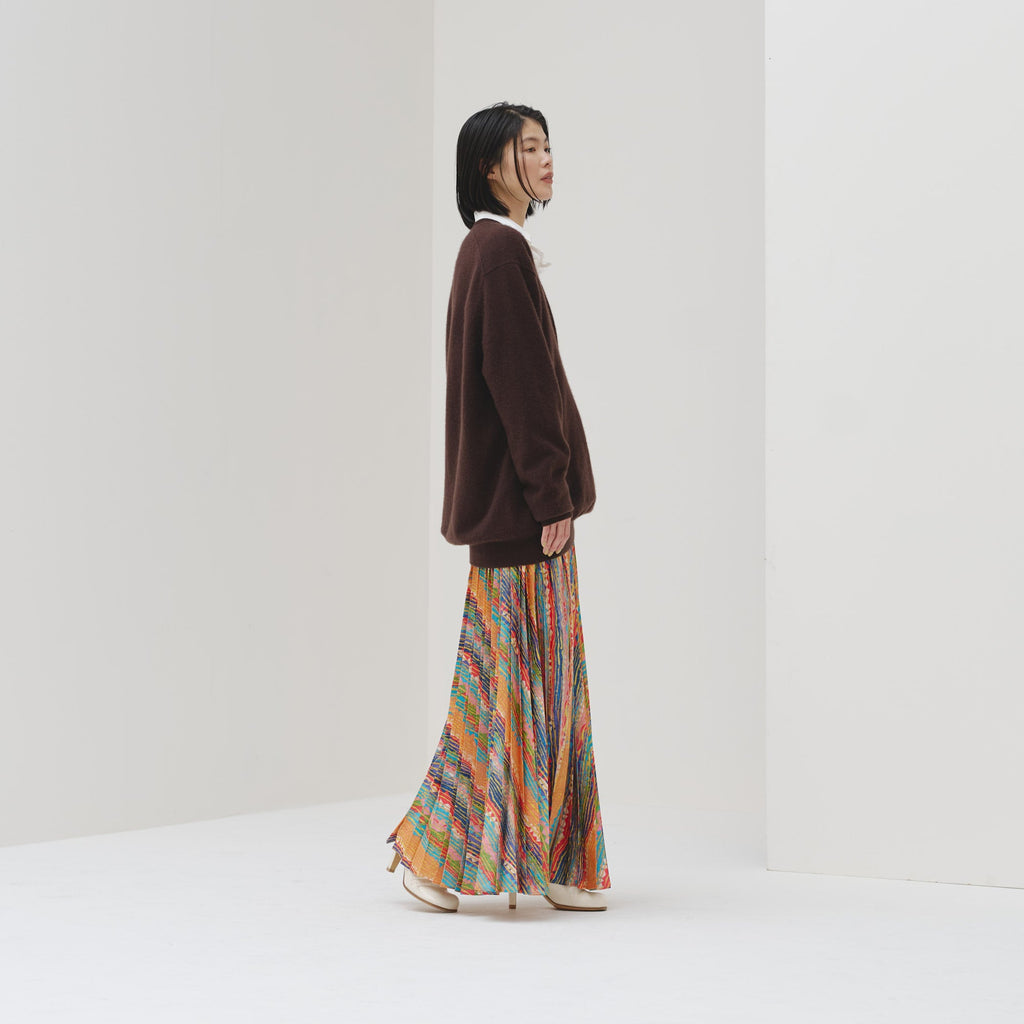 惜しみなく生地を使用し、アートが揺れる優雅なボリュームを実現しました。シンプルなトップスと合わせるだけで、特別なスタイリングが完成します。