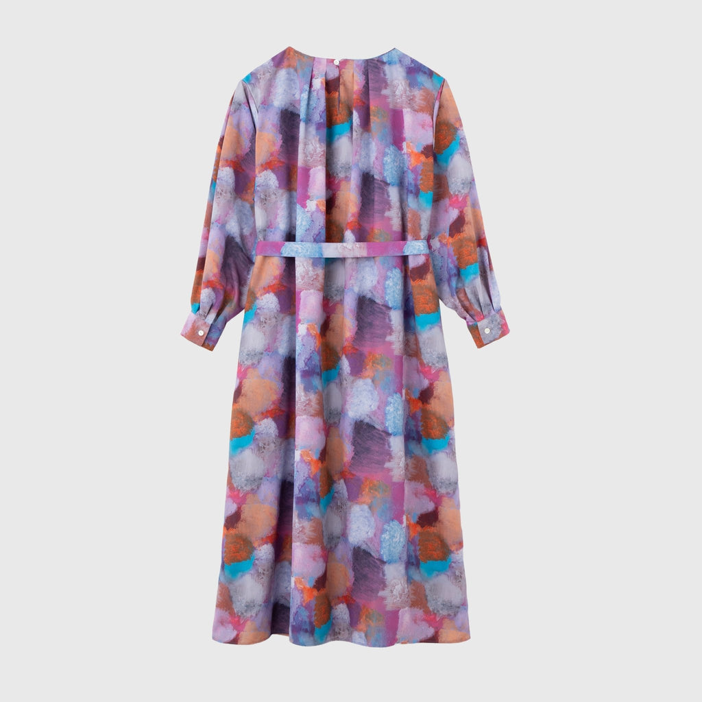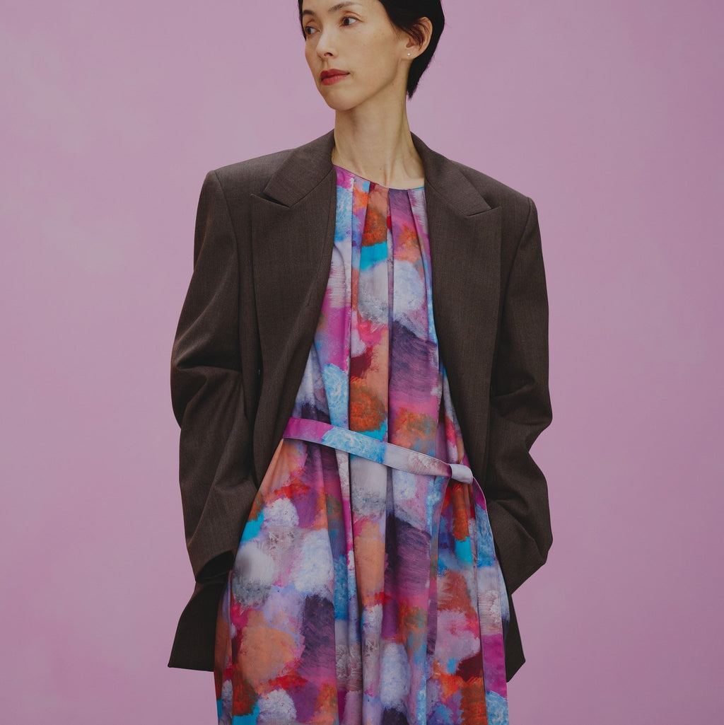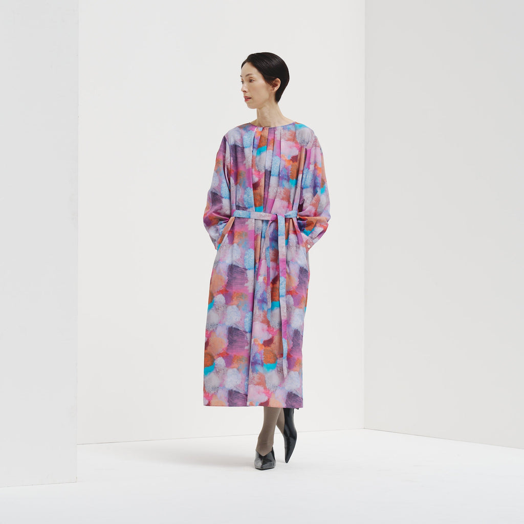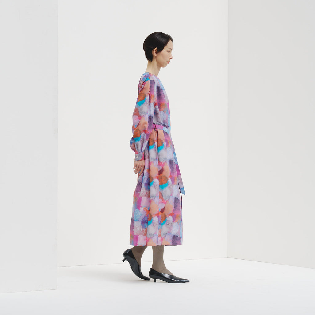 異彩が放つ魅力を感じられながらも、合わせるアイテムを選ばない絶妙なアートをセレクトしました。デイリーシーンをさりげなく華やかに彩るワンピースです。環境に優しいリサイクルポリエステル繊維のスパンブロード生地を使用し、先シーズンより少し光沢を抑えた生地感に仕上げました。パーティなどのおでかけにも、日常のおしゃれ着にも馴染みます。リラックス感がありながら上品な印象が魅力です。
