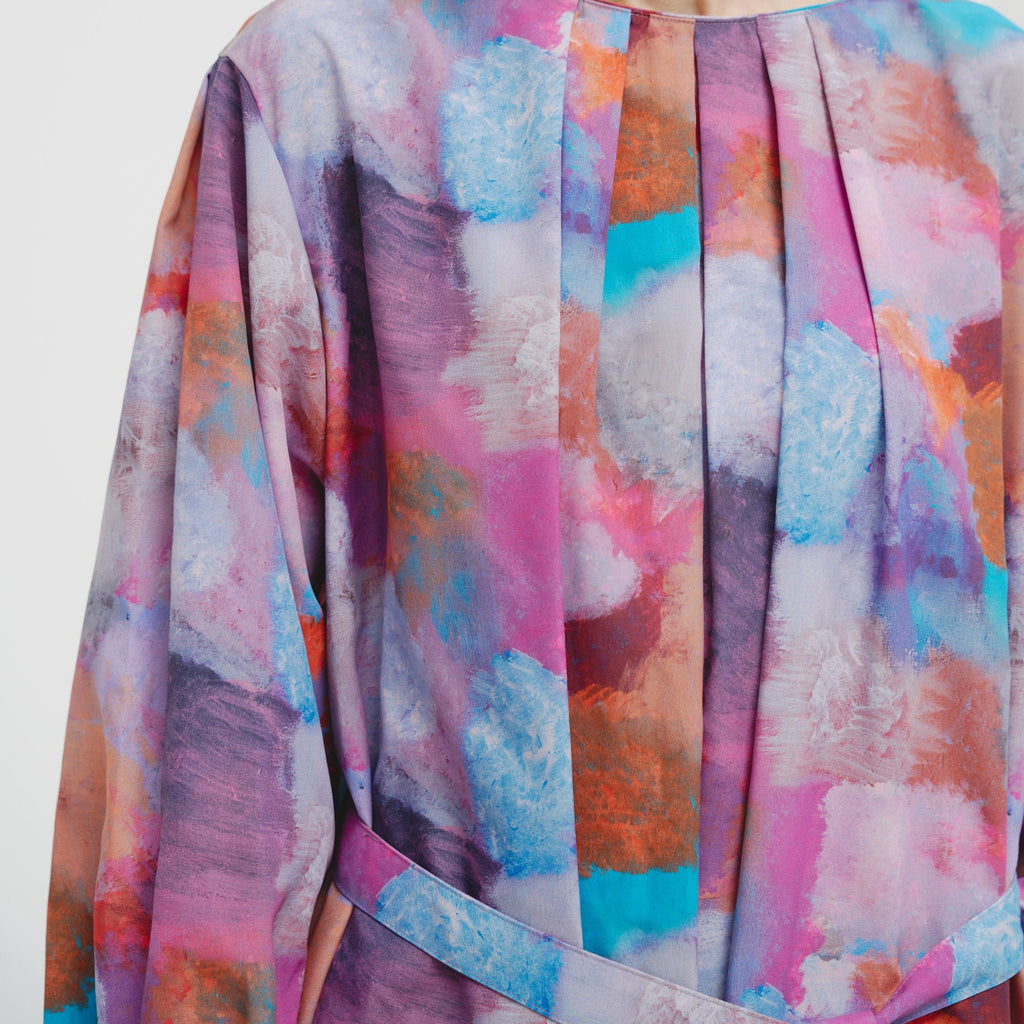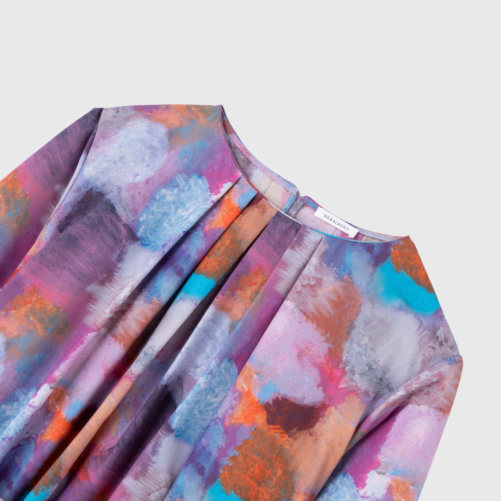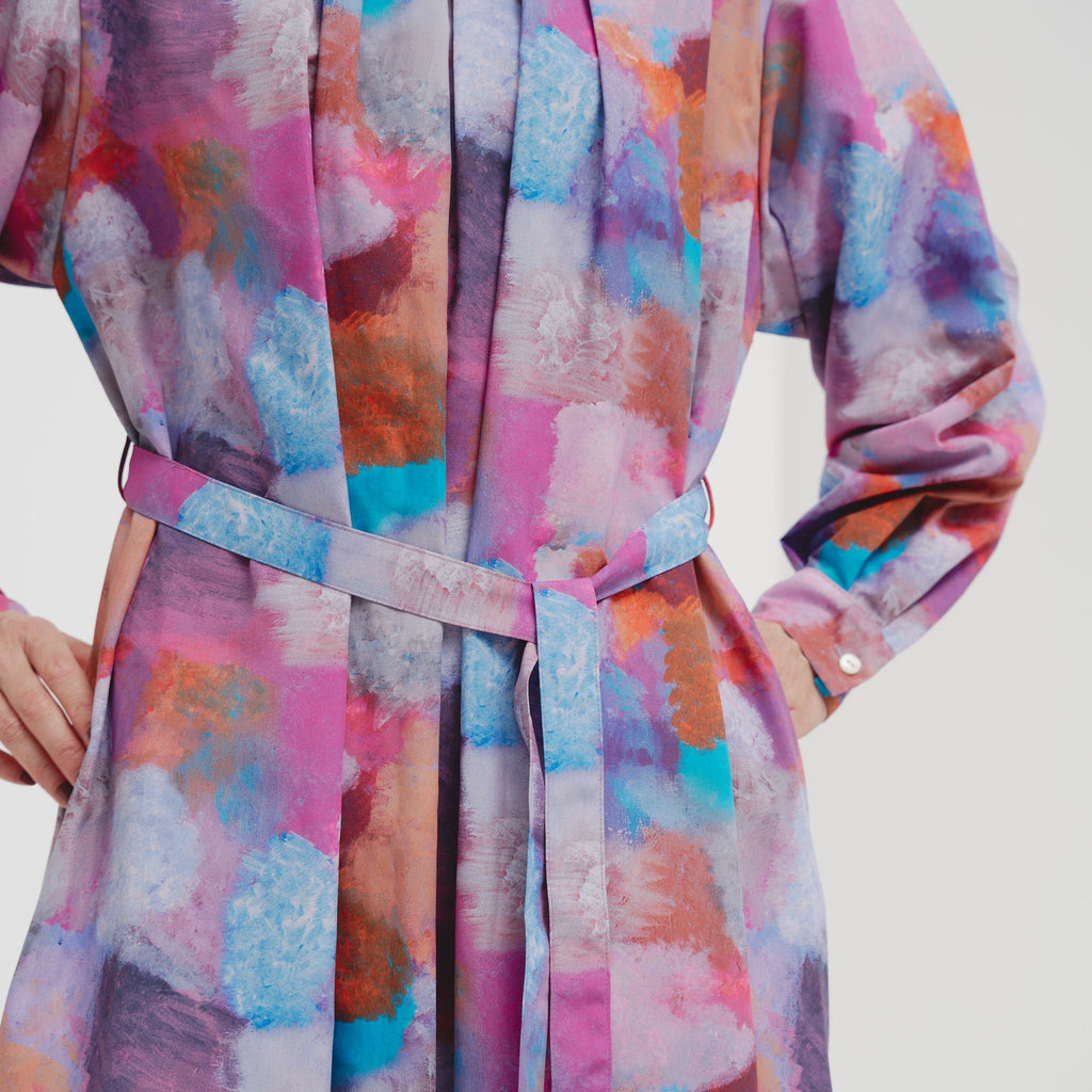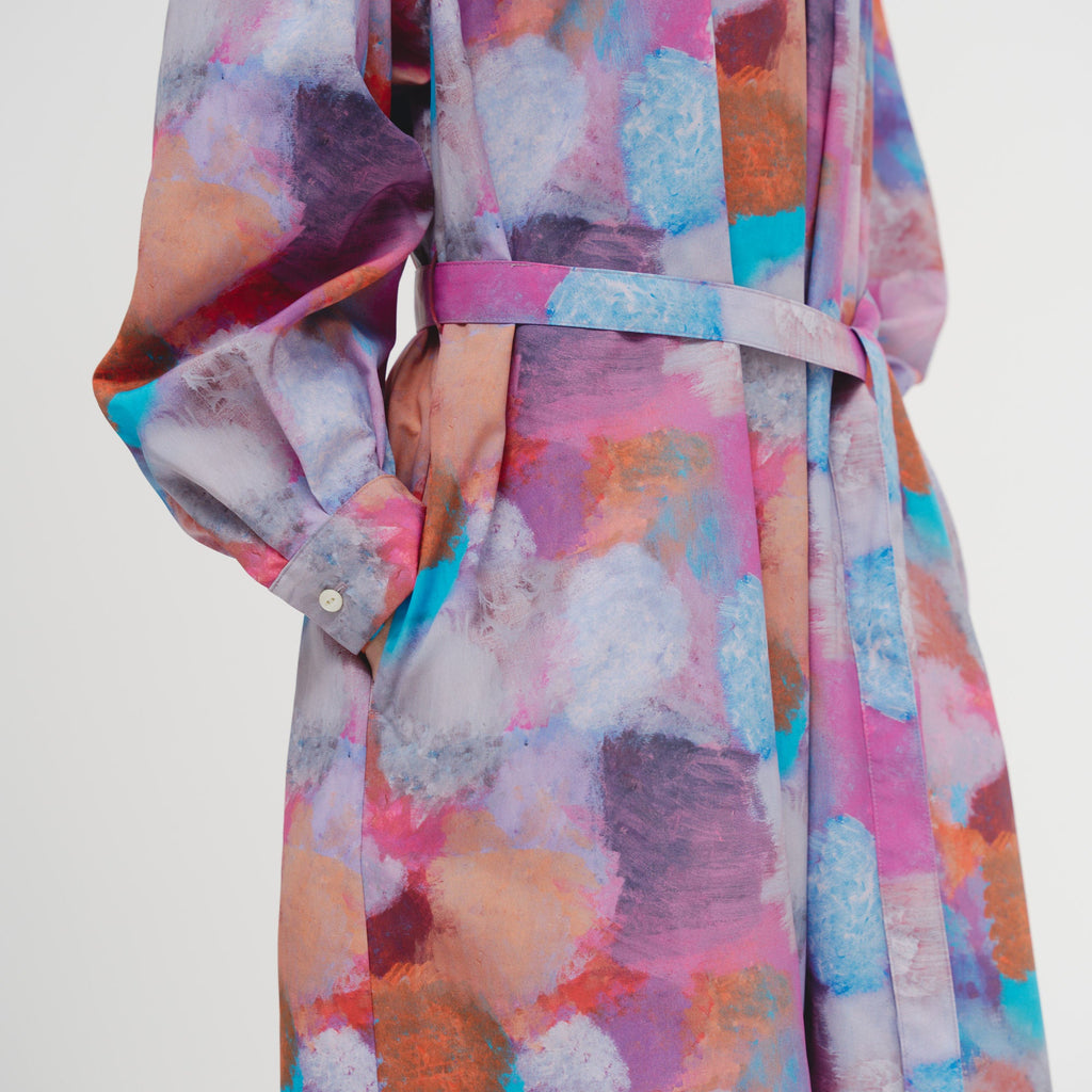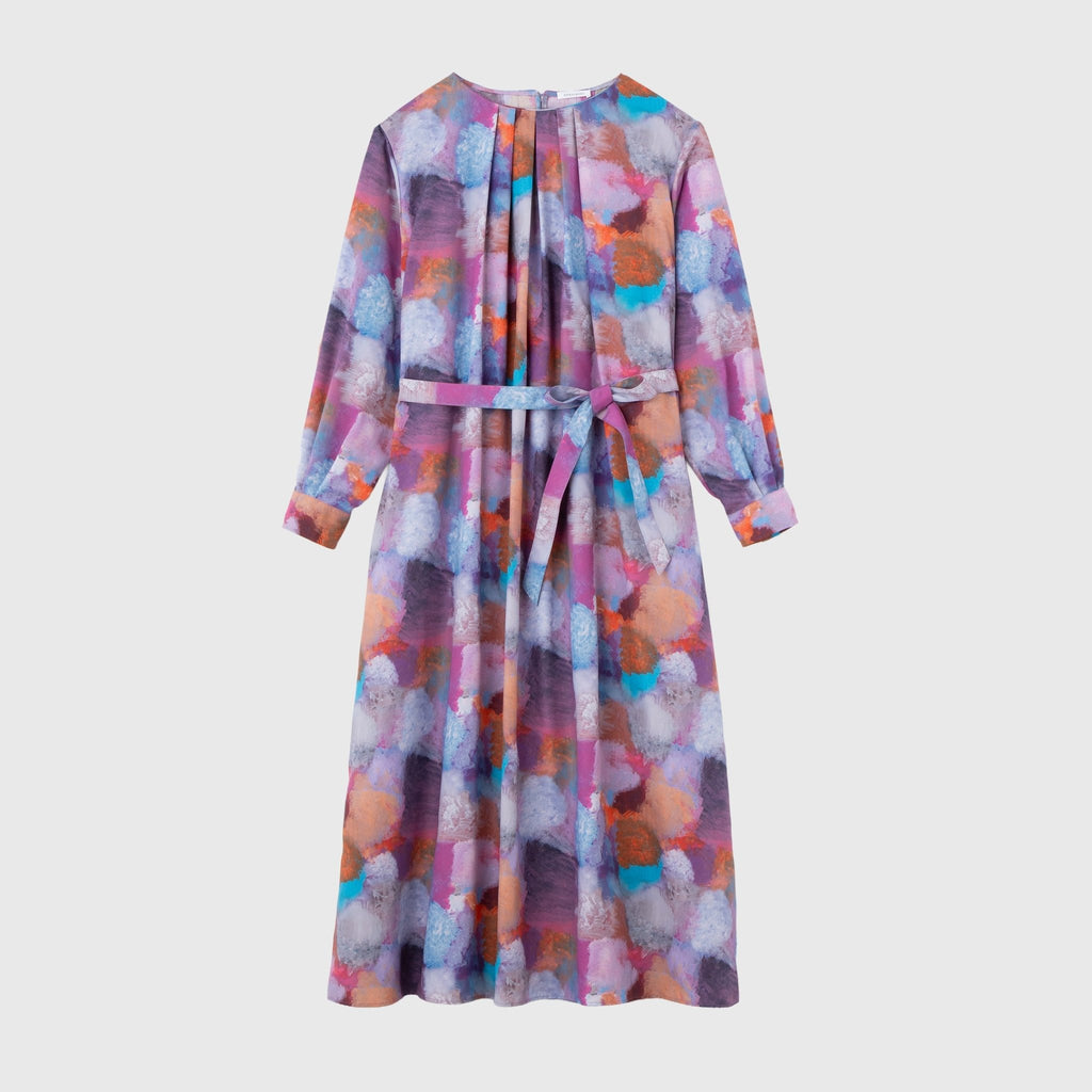 異彩が放つ魅力を感じられながらも、合わせるアイテムを選ばない絶妙なアートをセレクトしました。デイリーシーンをさりげなく華やかに彩るワンピースです。環境に優しいリサイクルポリエステル繊維のスパンブロード生地を使用し、先シーズンより少し光沢を抑えた生地感に仕上げました。パーティなどのおでかけにも、日常のおしゃれ着にも馴染みます。リラックス感がありながら上品な印象が魅力です。