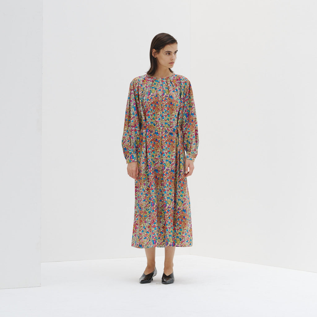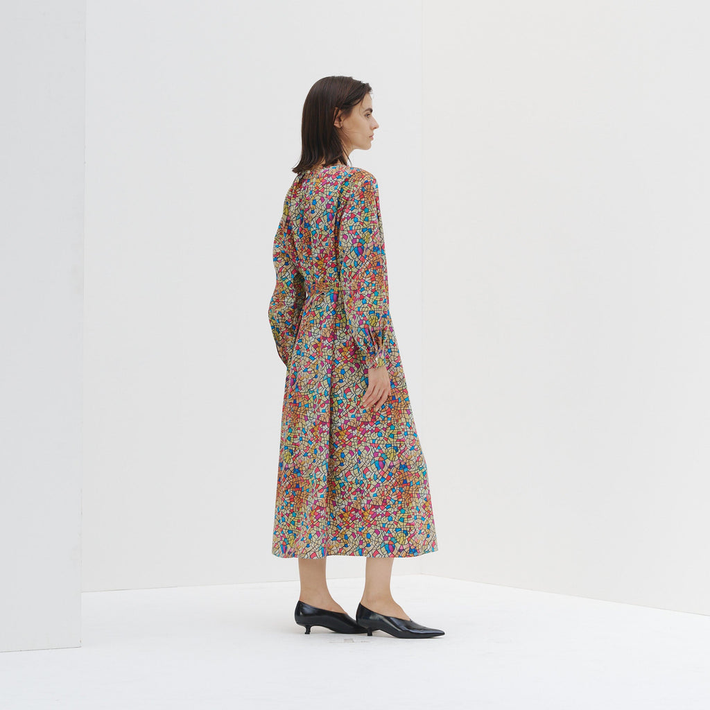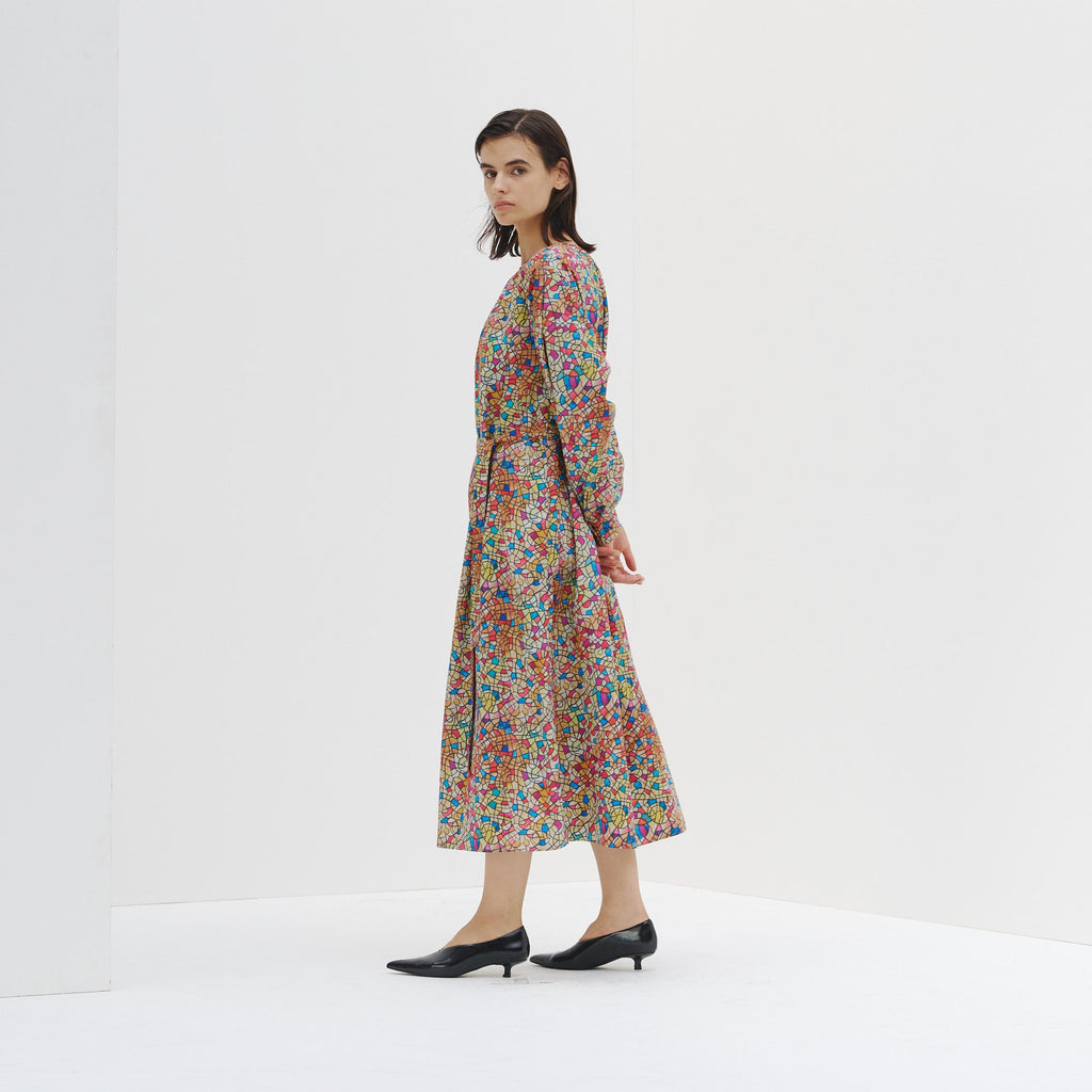 異彩が放つ魅力を感じられながらも、合わせるアイテムを選ばない絶妙なアートをセレクトしました。デイリーシーンをさりげなく華やかに彩るワンピースです。環境に優しいリサイクルポリエステル繊維のスパンブロード生地を使用し、先シーズンより少し光沢を抑えた生地感に仕上げました。パーティなどのおでかけにも、日常のおしゃれ着にも馴染みます。リラックス感がありながら上品な印象が魅力です。