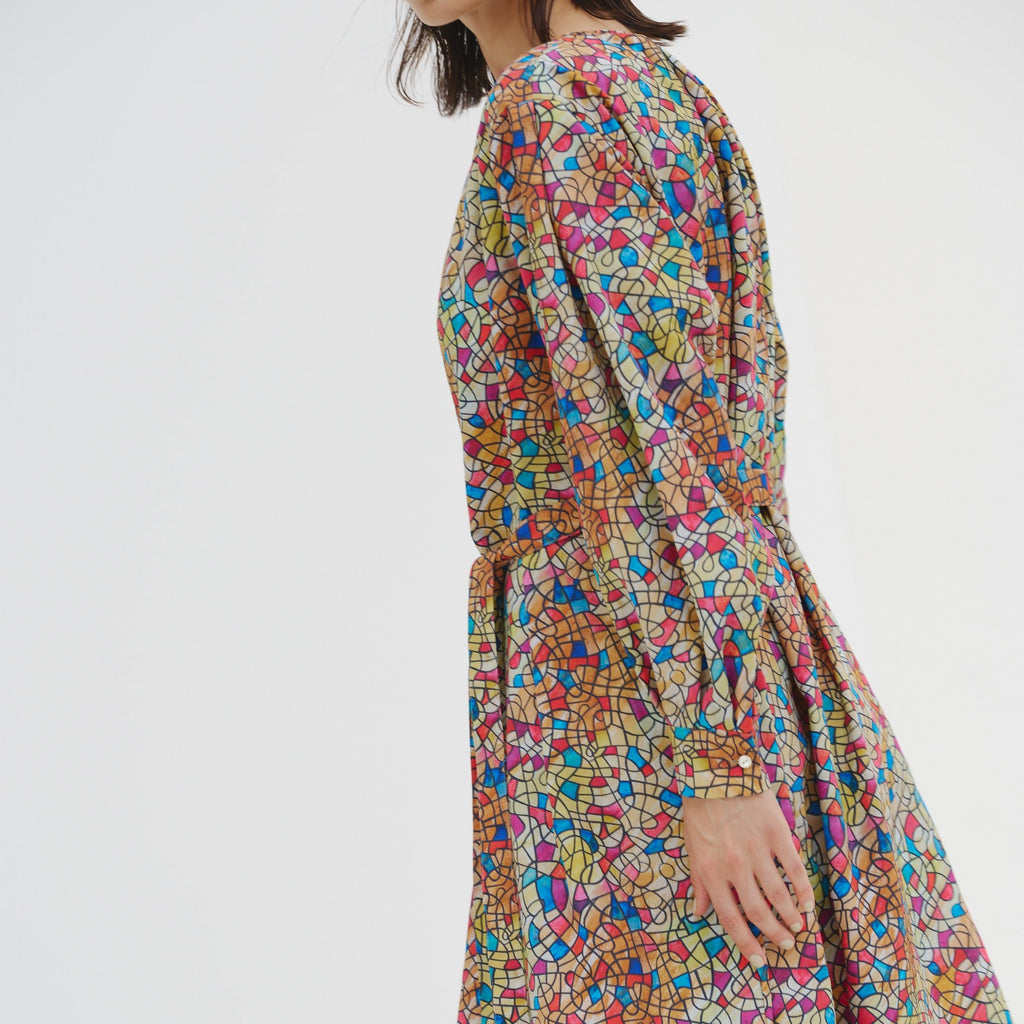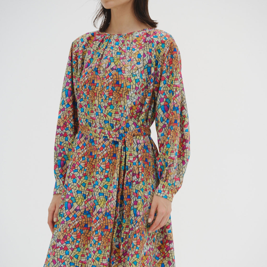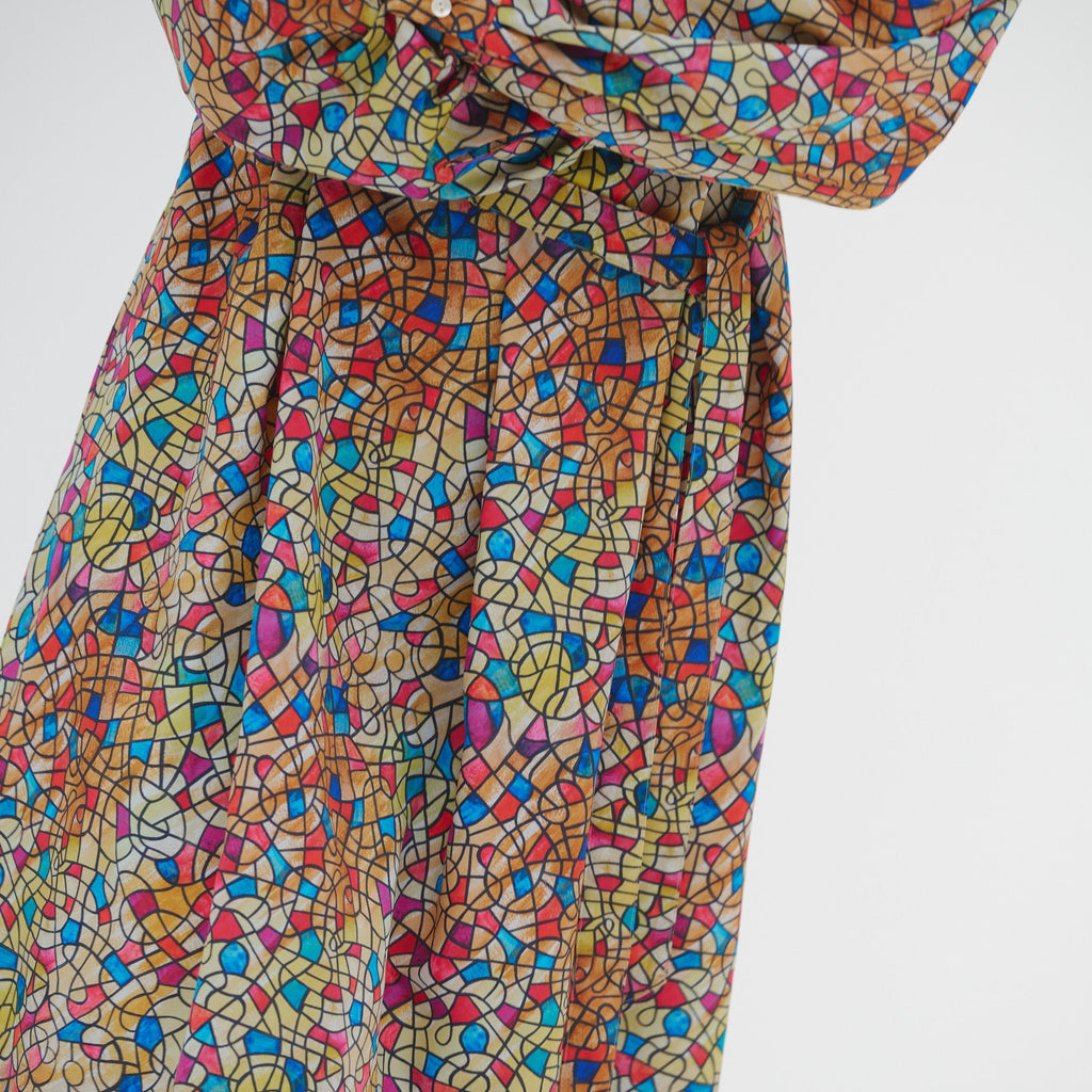 異彩が放つ魅力を感じられながらも、合わせるアイテムを選ばない絶妙なアートをセレクトしました。デイリーシーンをさりげなく華やかに彩るワンピースです。環境に優しいリサイクルポリエステル繊維のスパンブロード生地を使用し、先シーズンより少し光沢を抑えた生地感に仕上げました。パーティなどのおでかけにも、日常のおしゃれ着にも馴染みます。リラックス感がありながら上品な印象が魅力です。