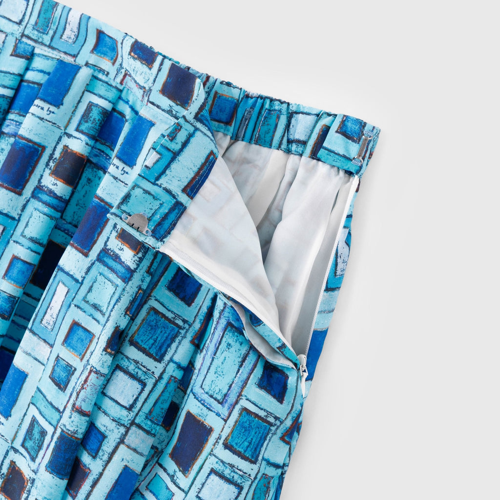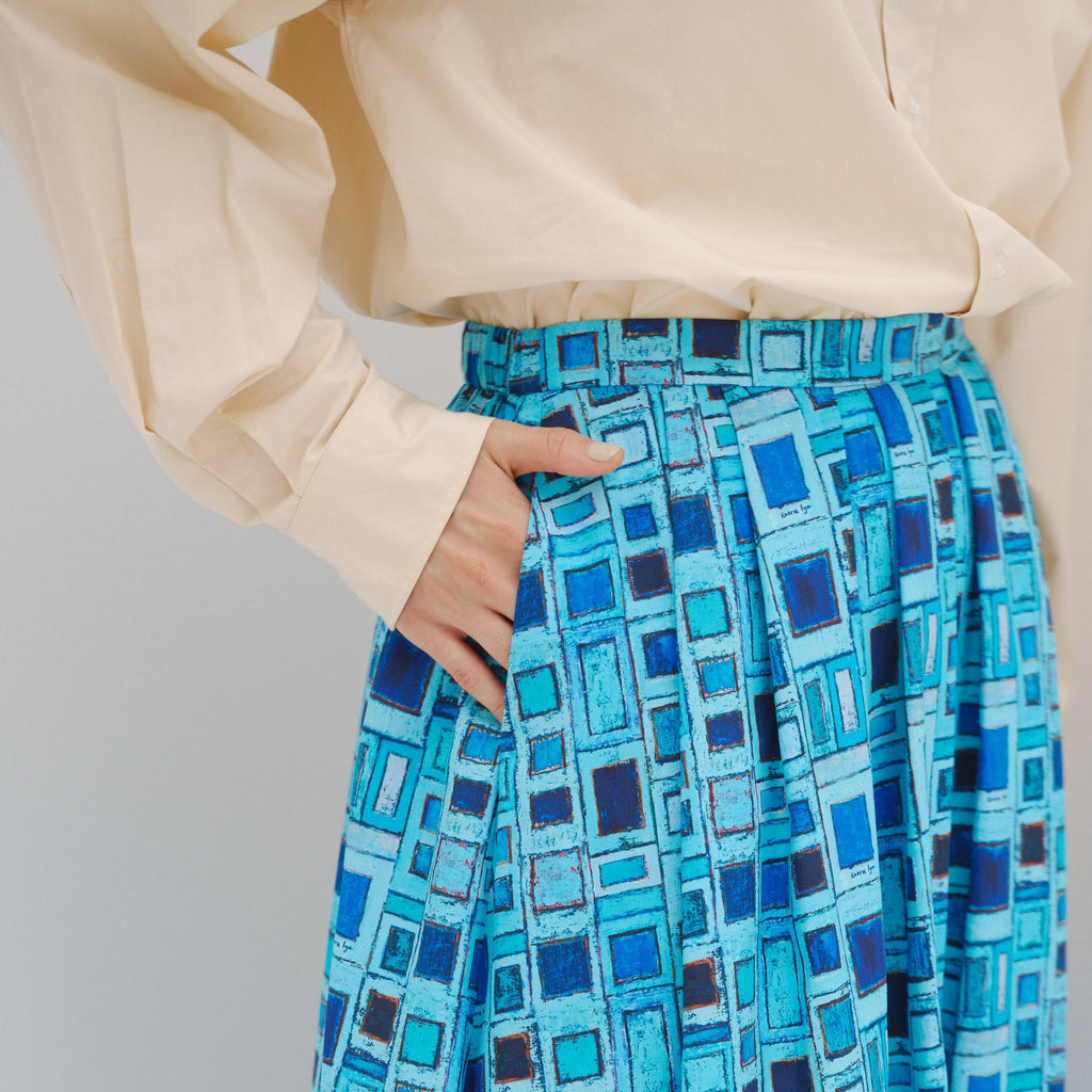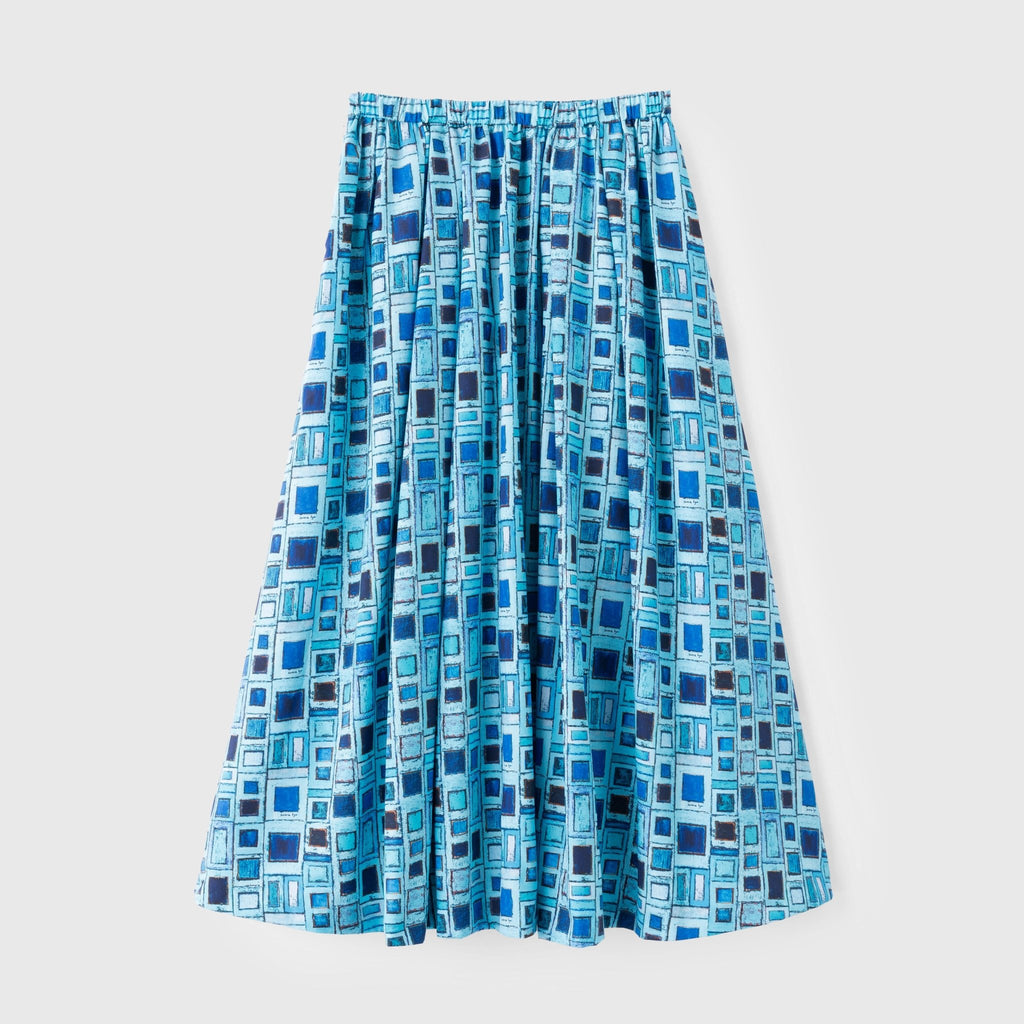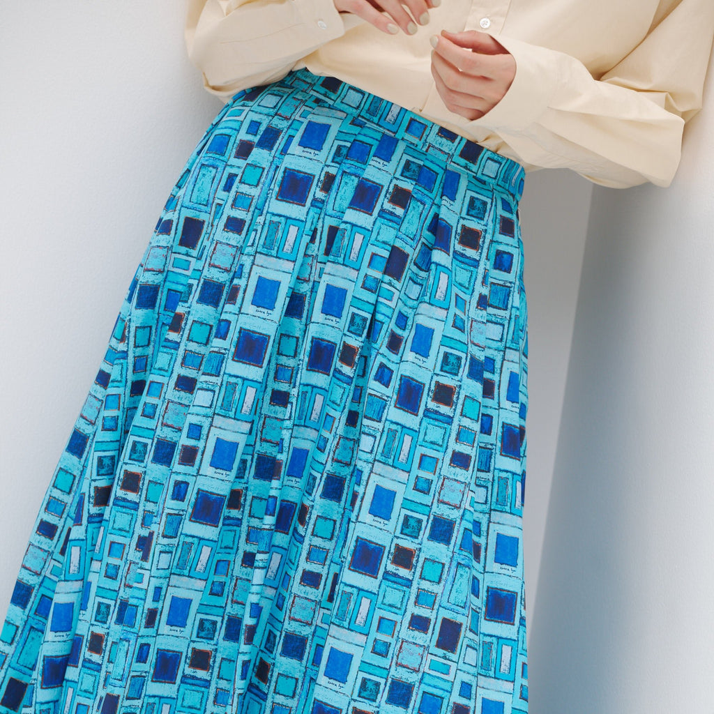 アートがふんわりと揺れる、大人のためのフレアスカートがバージョンアップ。ハリのある生地感で、オフィスカジュアルにもおすすめです。さらっとした肌心地の素材と、総ゴムのウエストで快適な着心地にもこだわりました。ご自宅で手洗い可能なお手入れのしやすさもポイントです。モデル身長:175cm