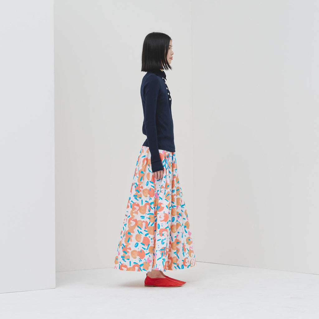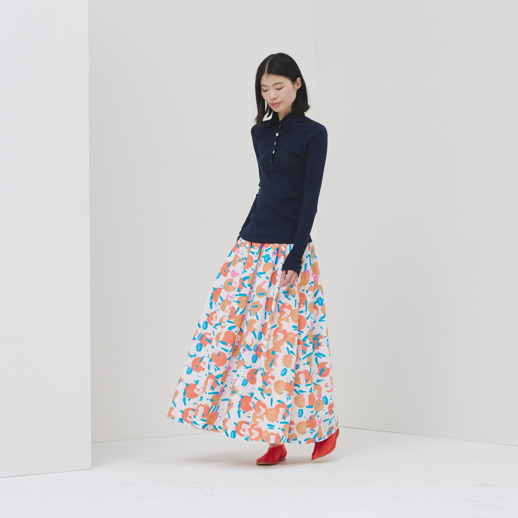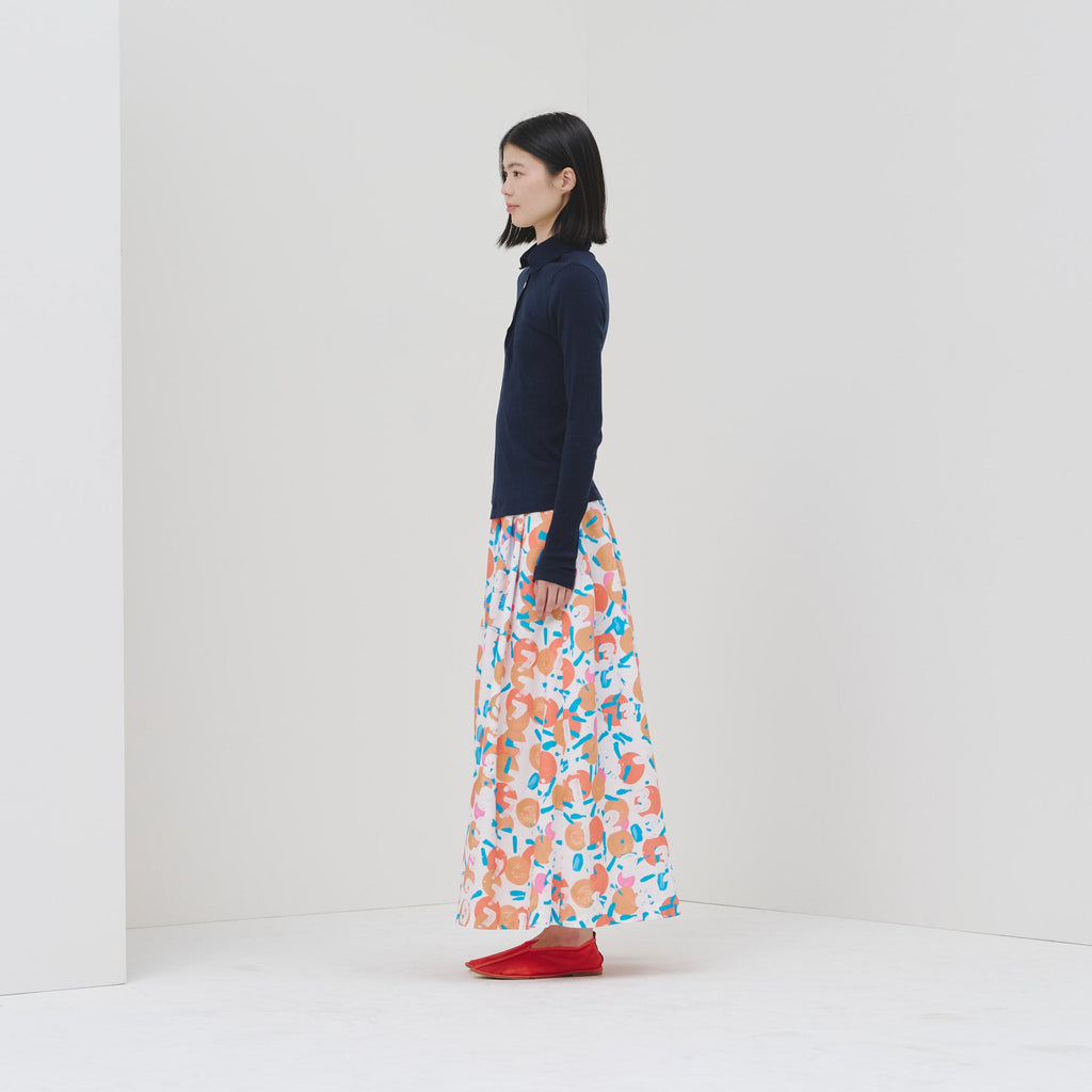 アートがふんわりと揺れる、大人のためのフレアスカートがバージョンアップ。ハリのある生地感で、オフィスカジュアルにもおすすめです。さらっとした肌心地の素材と、総ゴムのウエストで快適な着心地にもこだわりました。ご自宅で手洗い可能なお手入れのしやすさもポイントです。