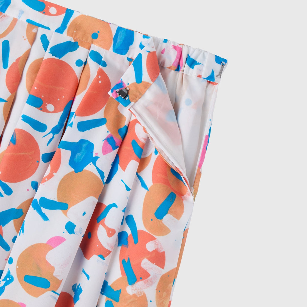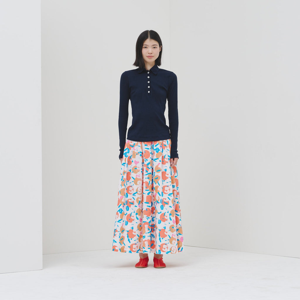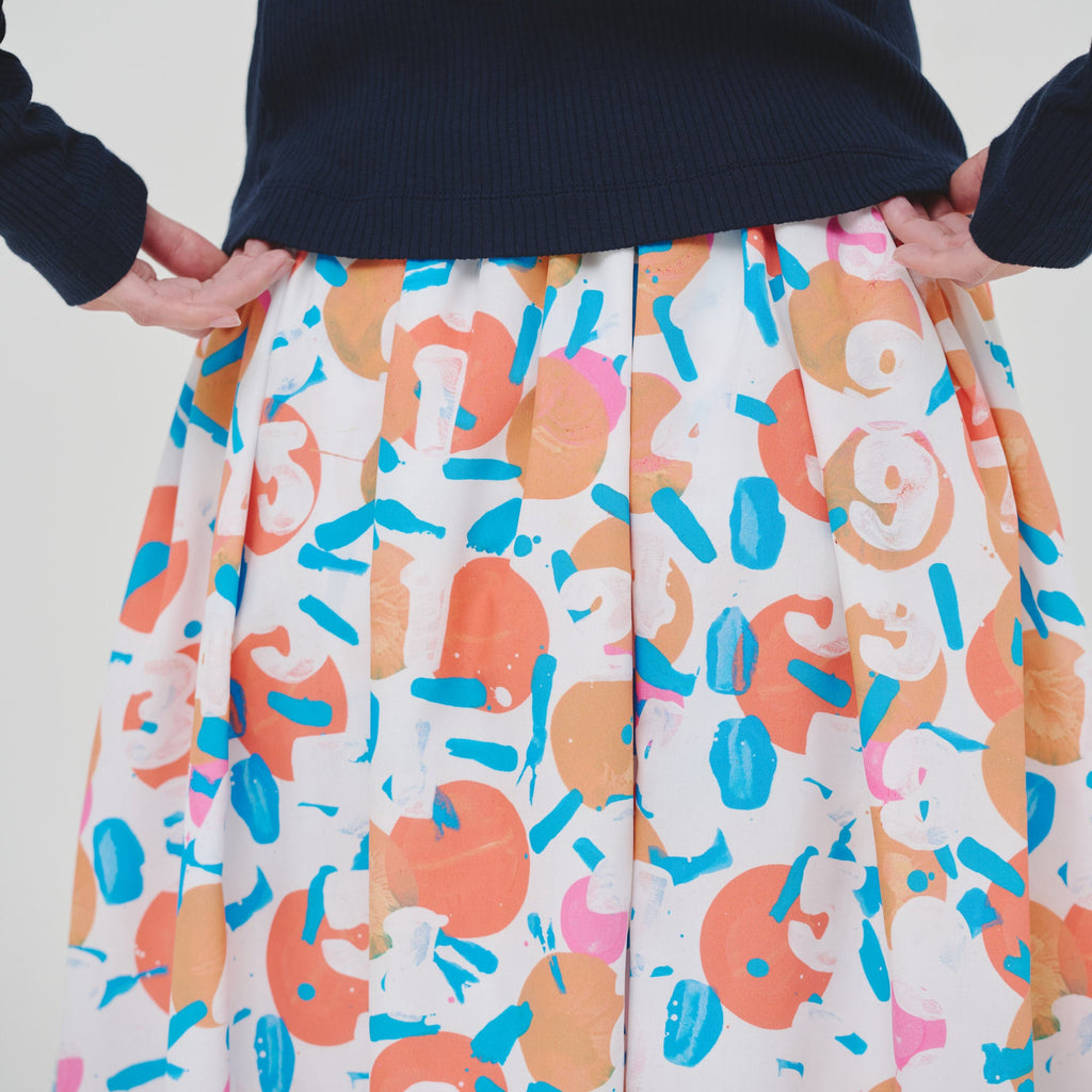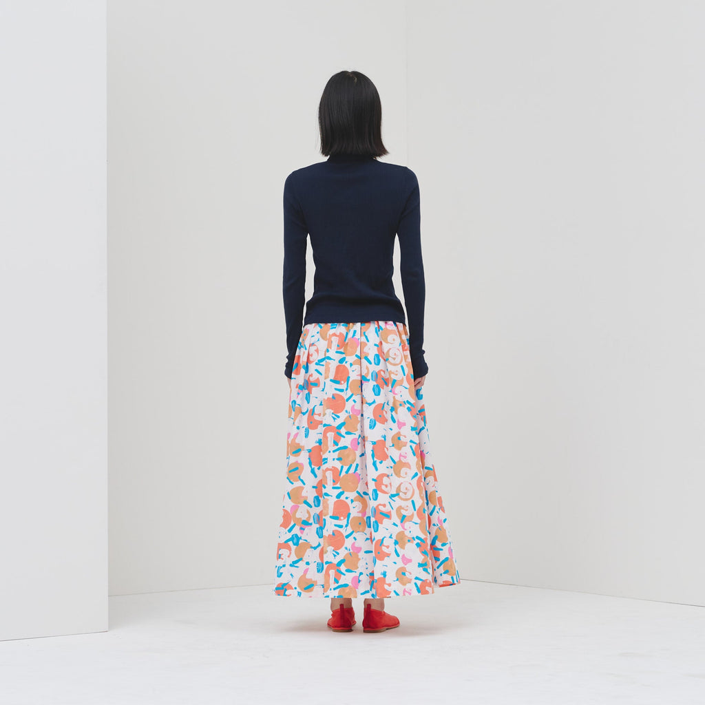 アートがふんわりと揺れる、大人のためのフレアスカートがバージョンアップ。ハリのある生地感で、オフィスカジュアルにもおすすめです。さらっとした肌心地の素材と、総ゴムのウエストで快適な着心地にもこだわりました。ご自宅で手洗い可能なお手入れのしやすさもポイントです。