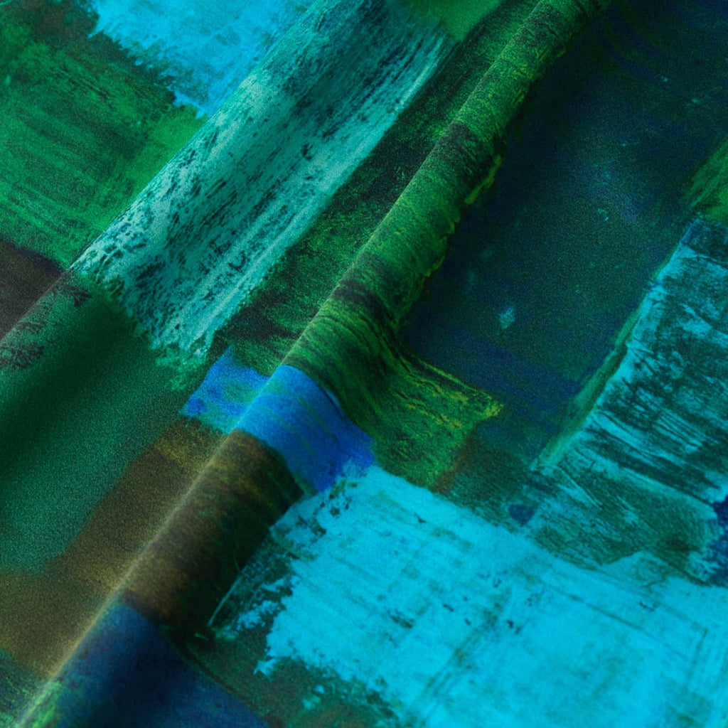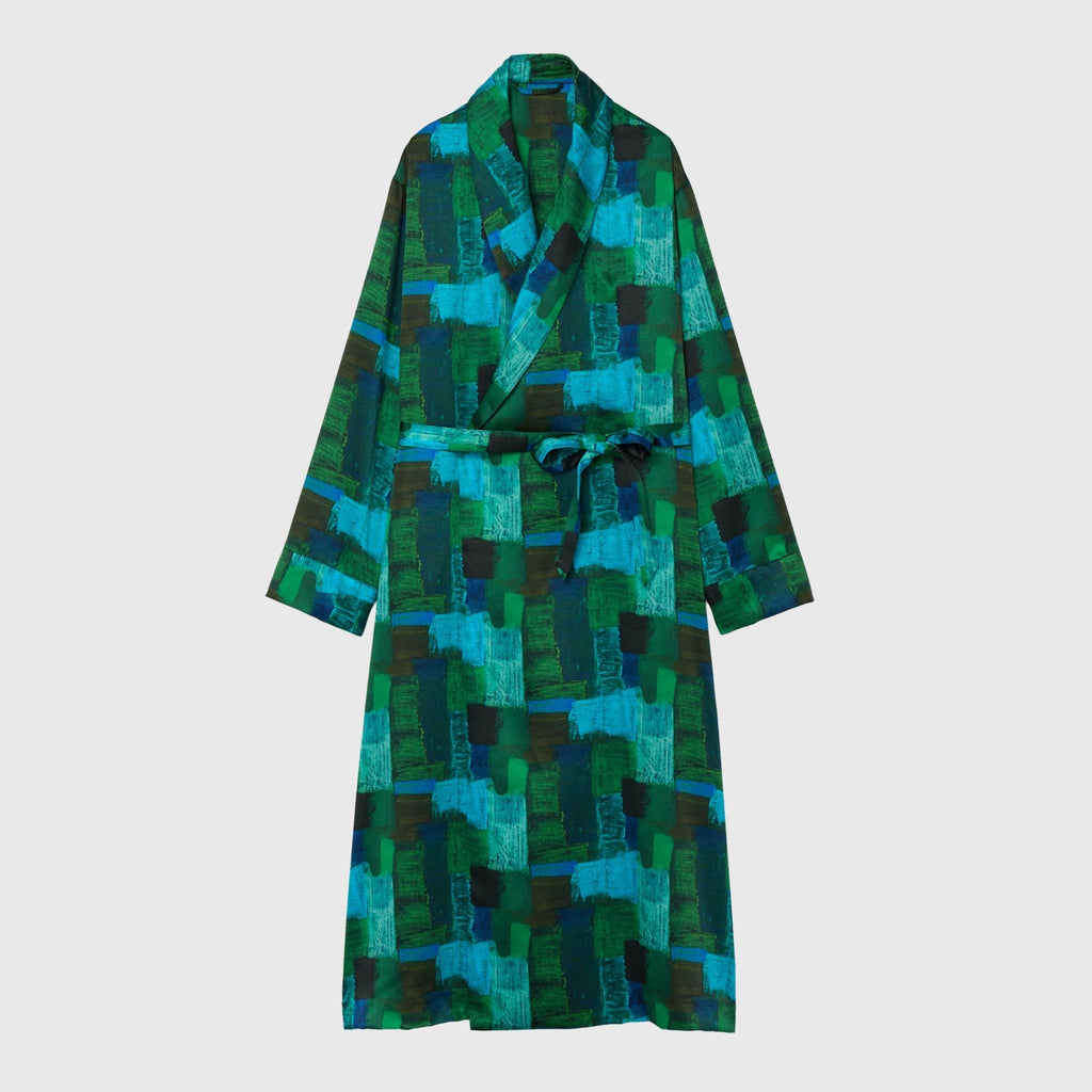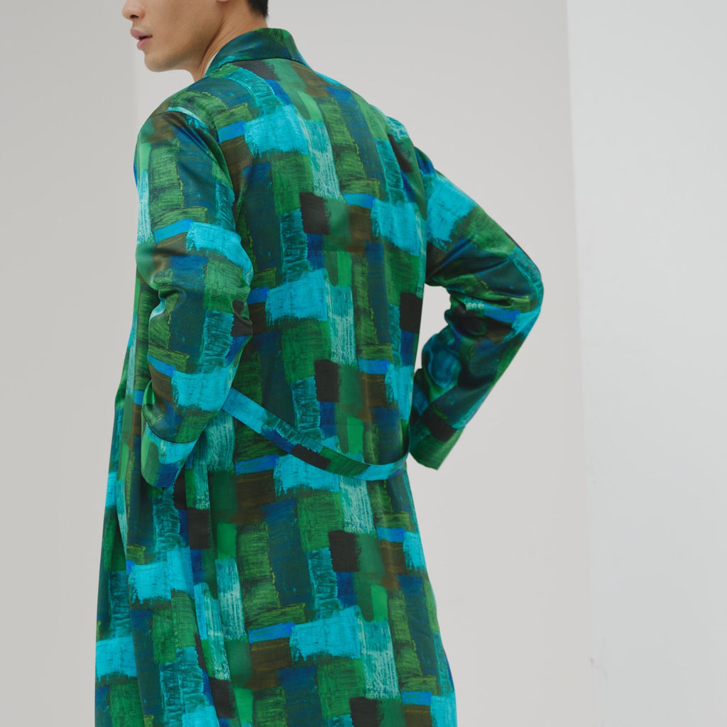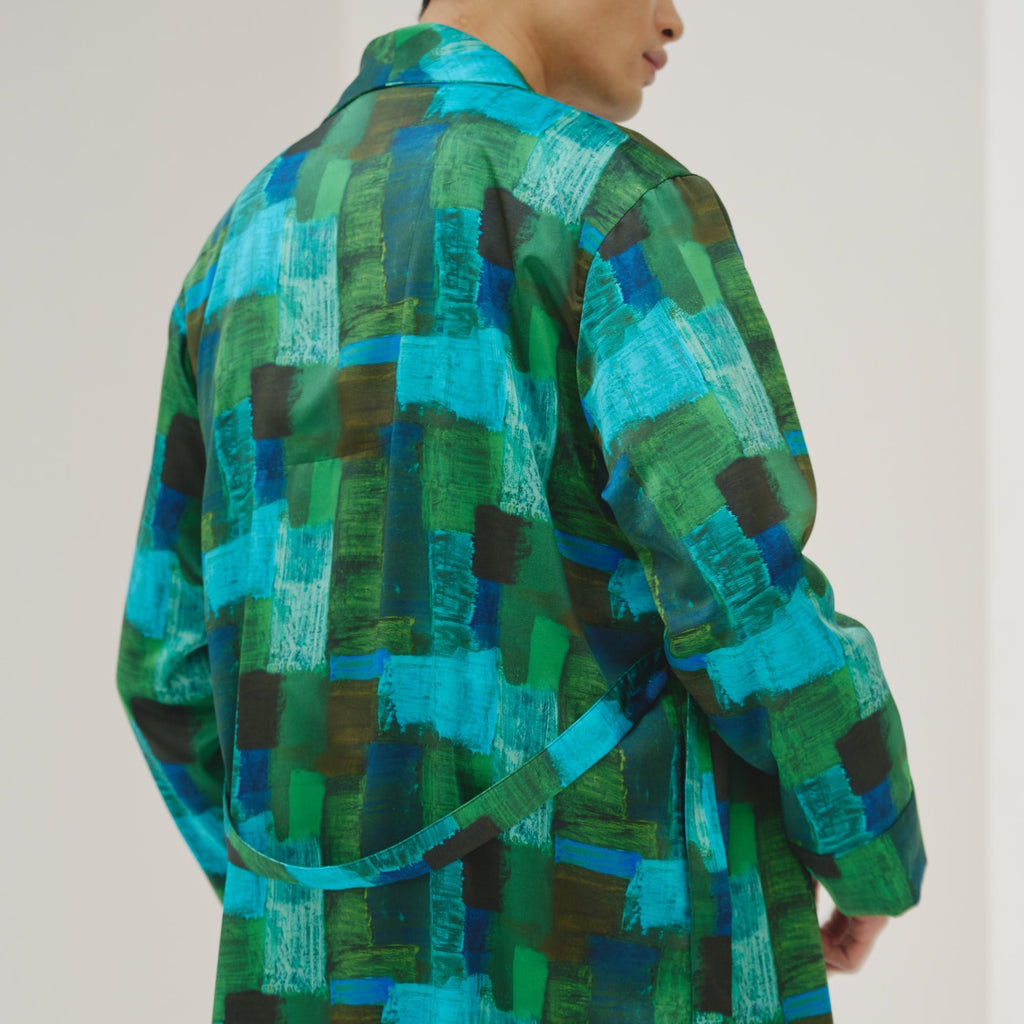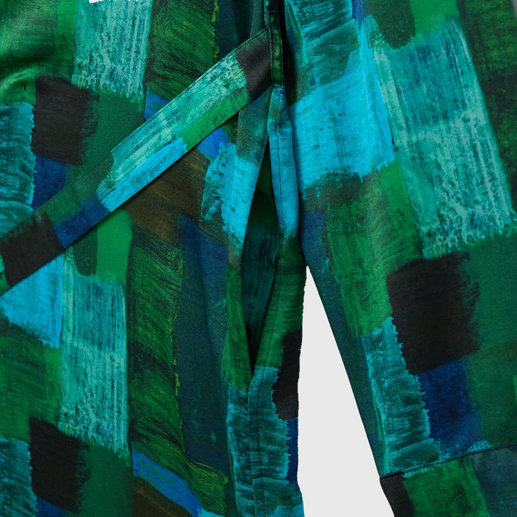 ワンピースとしても、羽織りとしても着られる、リラックス感あふれるガウンコート。レイヤードによって冬から春まで活躍する一枚です。同じアートを起用したサーキュラープリーツスカートとのセットアップもおすすめです。