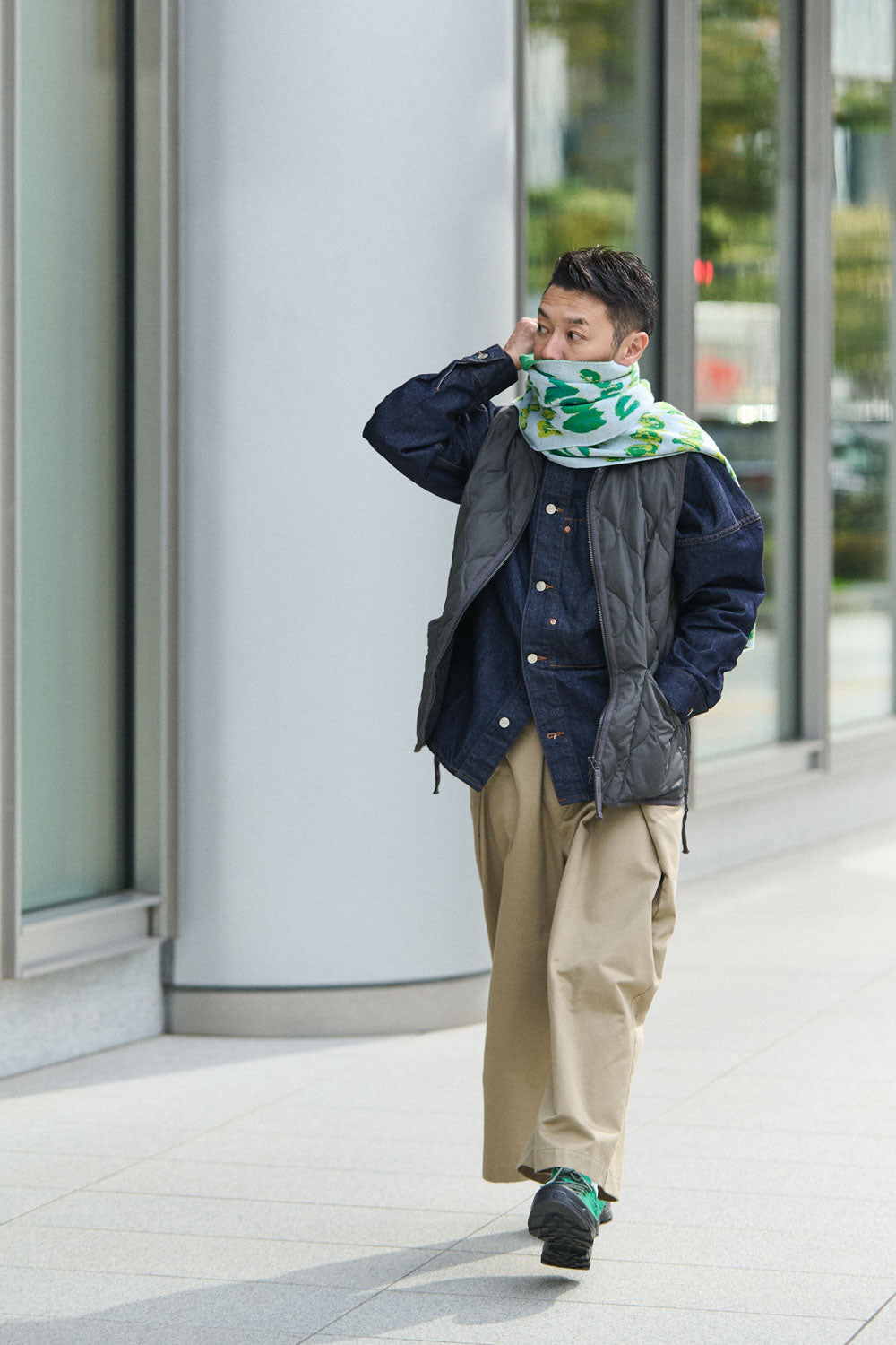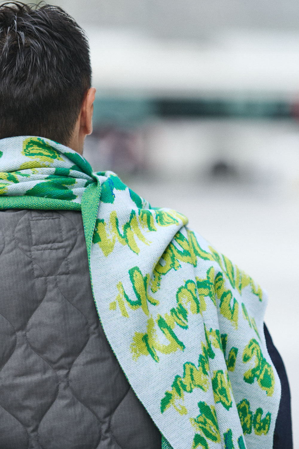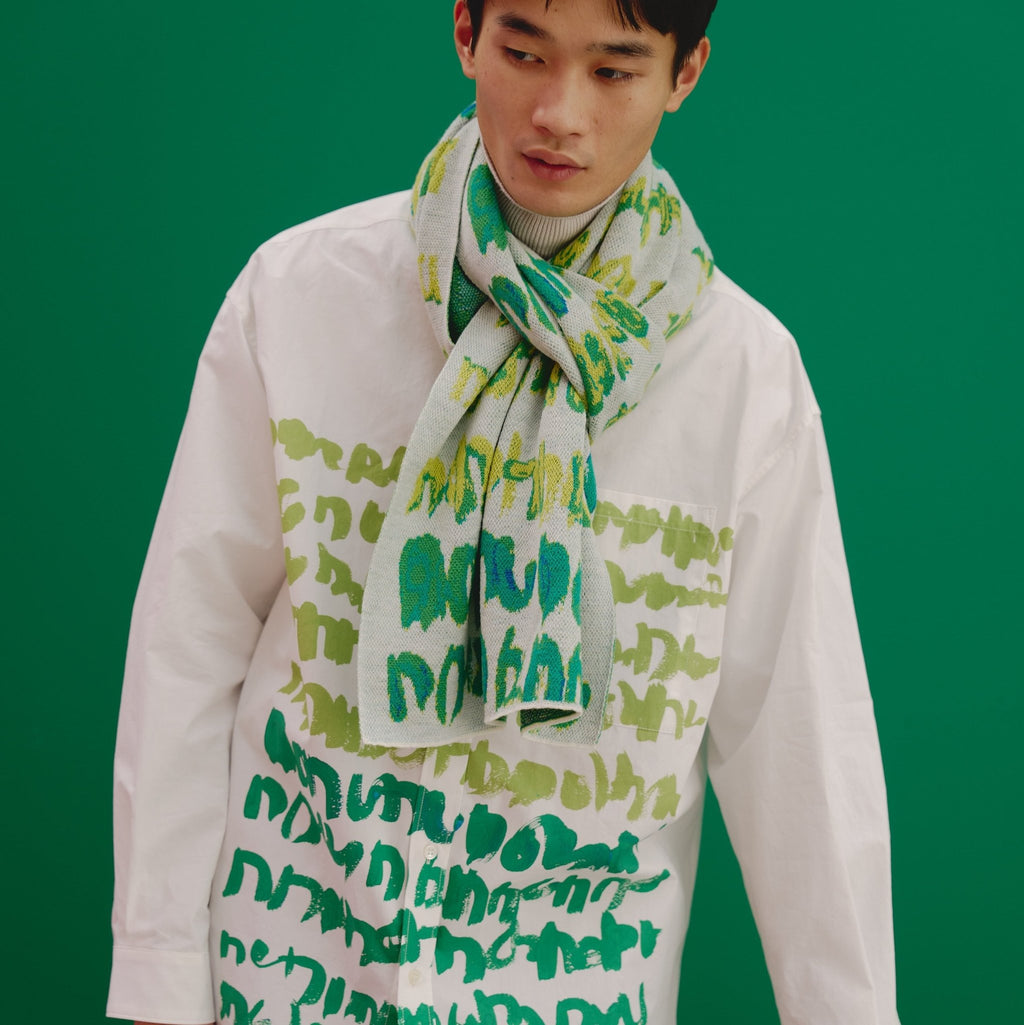 秋冬のスタイリングに、さっと巻くだけでアクセントになるロングマフラー。ジャカード織りによって、作品の質感までも忠実に再現しています。異なる風合いの糸を組み合わせることで、軽やかで上品な表情が生まれ、カジュアルなファッションを洗練された印象に仕上げます。