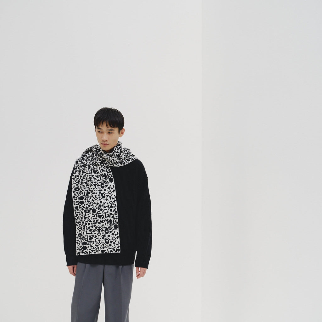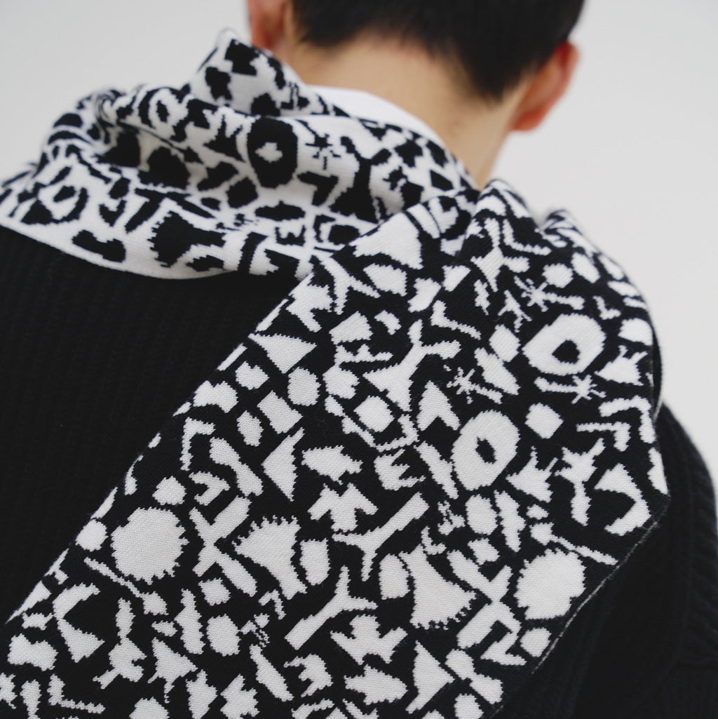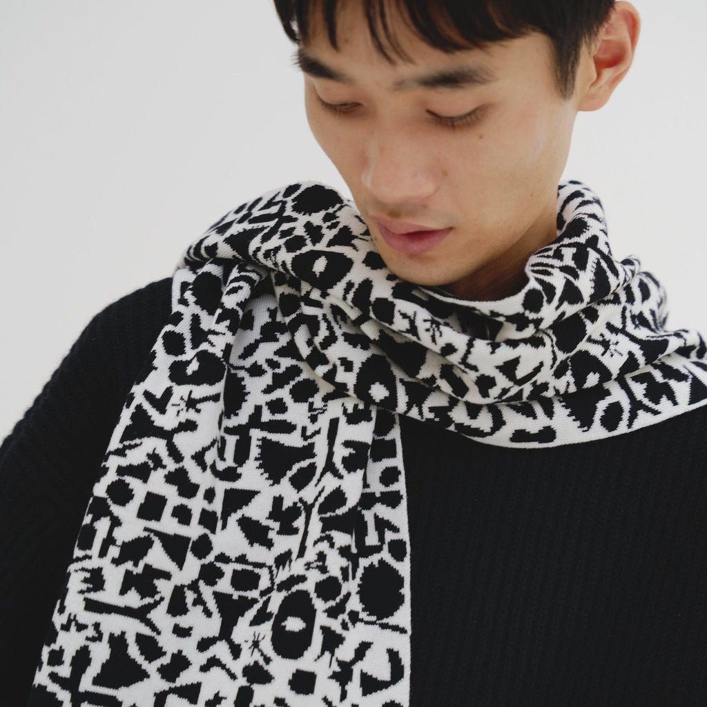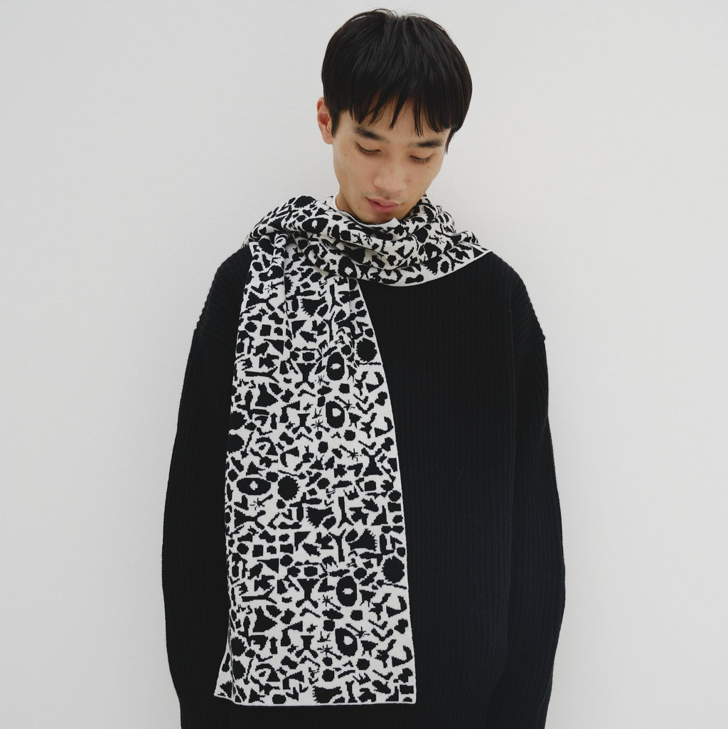 秋冬のスタイリングに、さっと巻くだけでアクセントになるロングマフラー。ジャカード織りによって、作品の質感までも忠実に再現しています。異なる風合いの糸を組み合わせることで、軽やかで上品な表情が生まれ、カジュアルなファッションを洗練された印象に仕上げます。