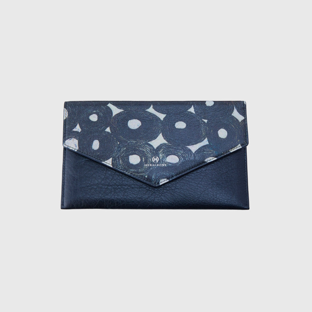 レター型のシルエットは洗練された印象を演出しながら、開閉のしやすさも魅力。フラップと内側の一部に取り入れたアートが、旅の時間を豊かに彩ります。