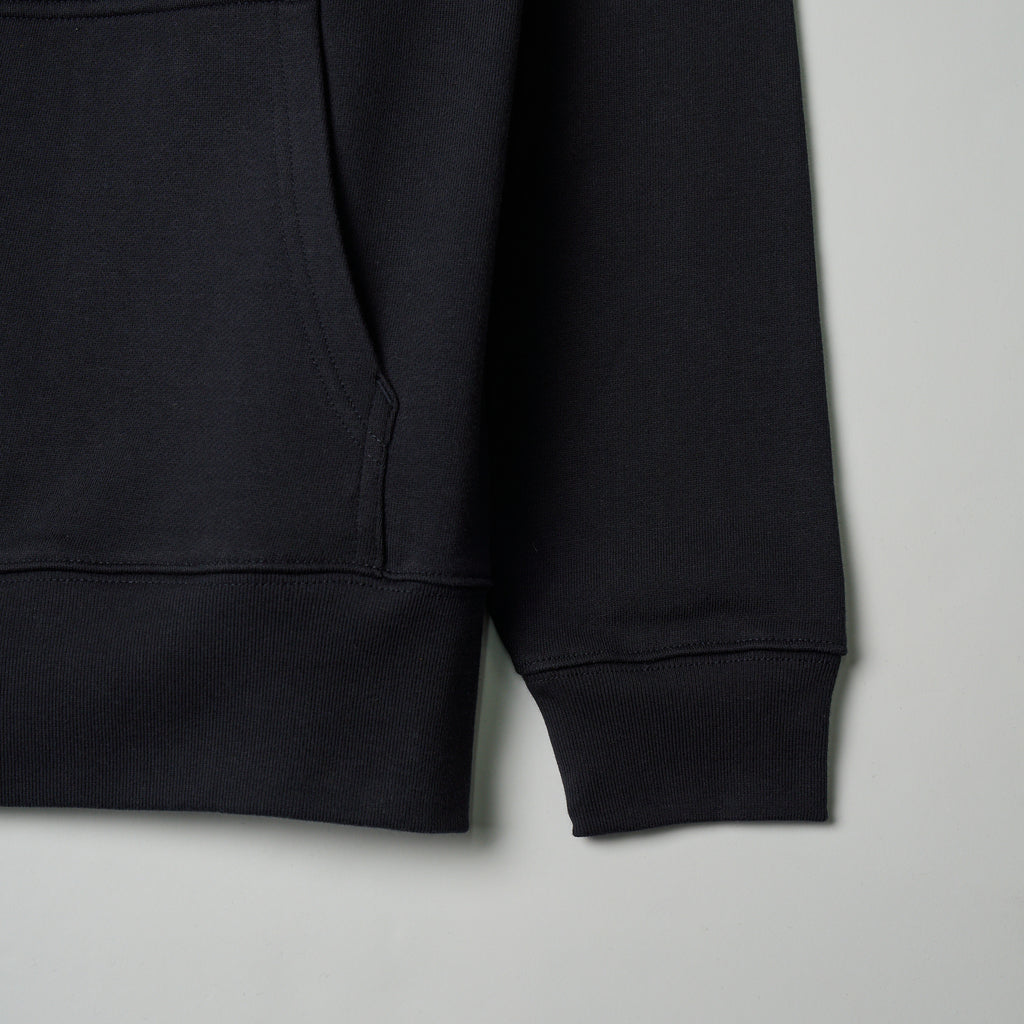 異彩のアートをビッグプリントで堪能するフード付きスウェット。フロントはシンプルなロゴのみのデザイン、バックのアートでさりげなく異彩をスタイリングに取り入れられます。