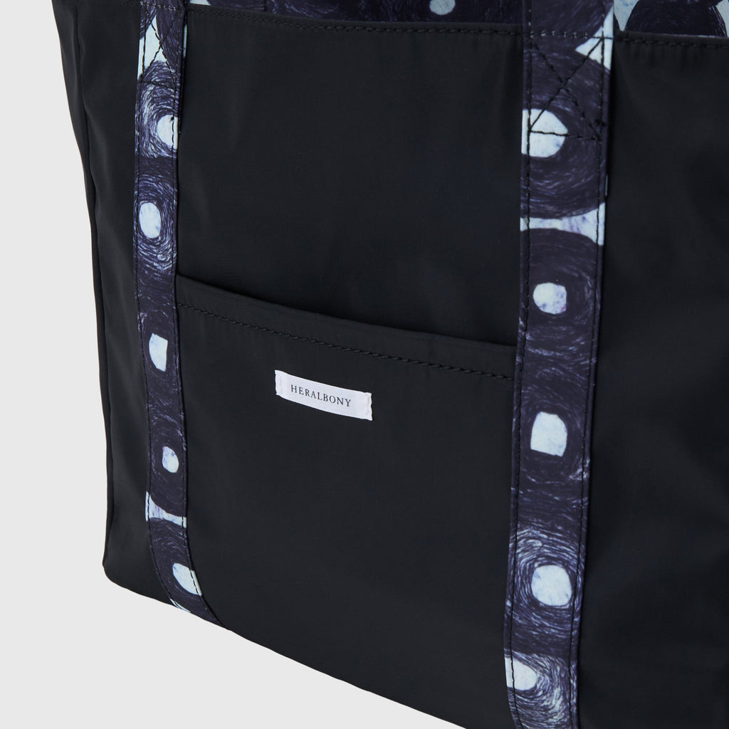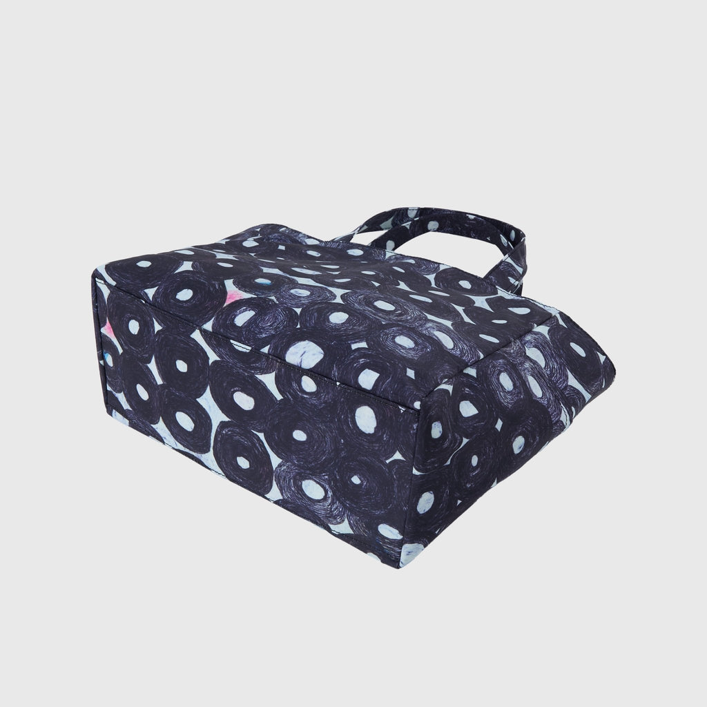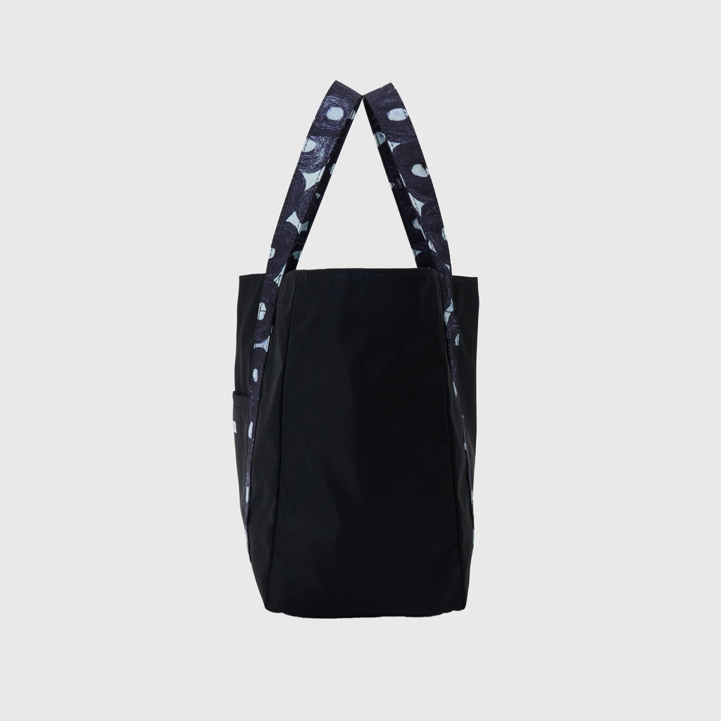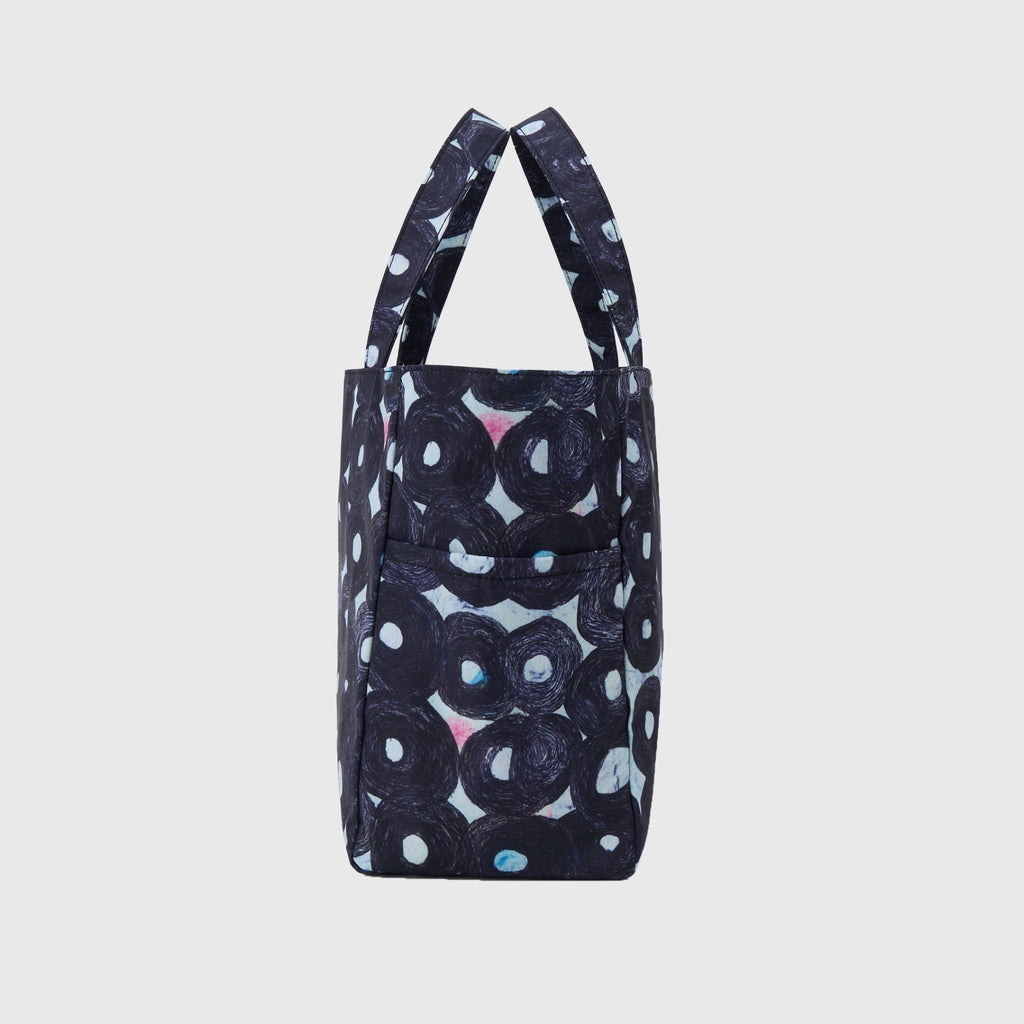 裏表で異なるデザインを楽しめるリバーシブルバッグ。厚みのあるなめらかな手触りの生地を使用し、ほどよい光沢感がカジュアルになりすぎず、さりげないきちんと感を演出します。3つのアートを、2サイズ(S・M)からお選びいただけます。