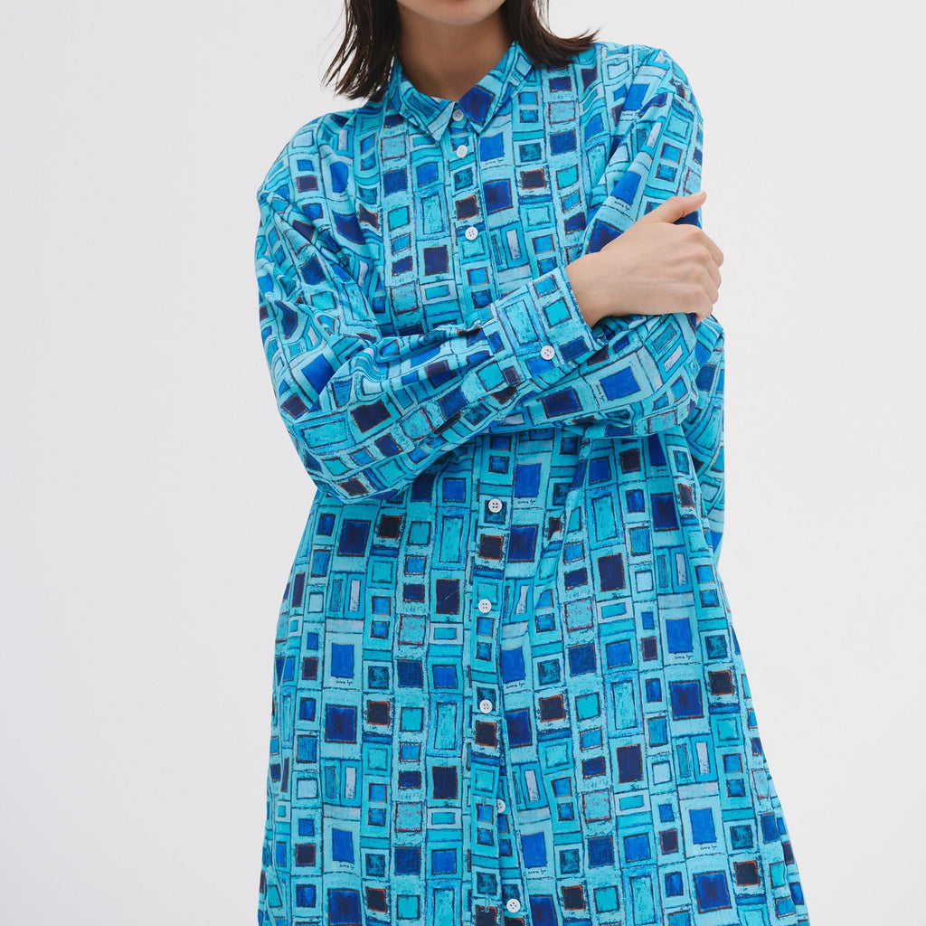 季節を問わず活躍する前開きのシャツワンピース。ゆとりのあるリラックスしたシルエットですが、ハリのある生地感でオフィスカジュアルでも着られる上品な印象に仕上げました。ご自宅で手洗い可能なお手入れのしやすさもポイントです。