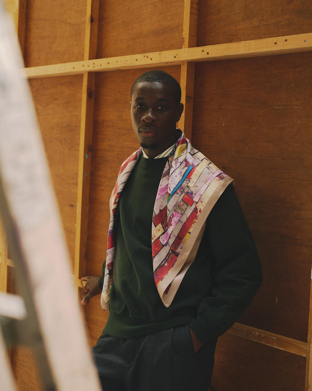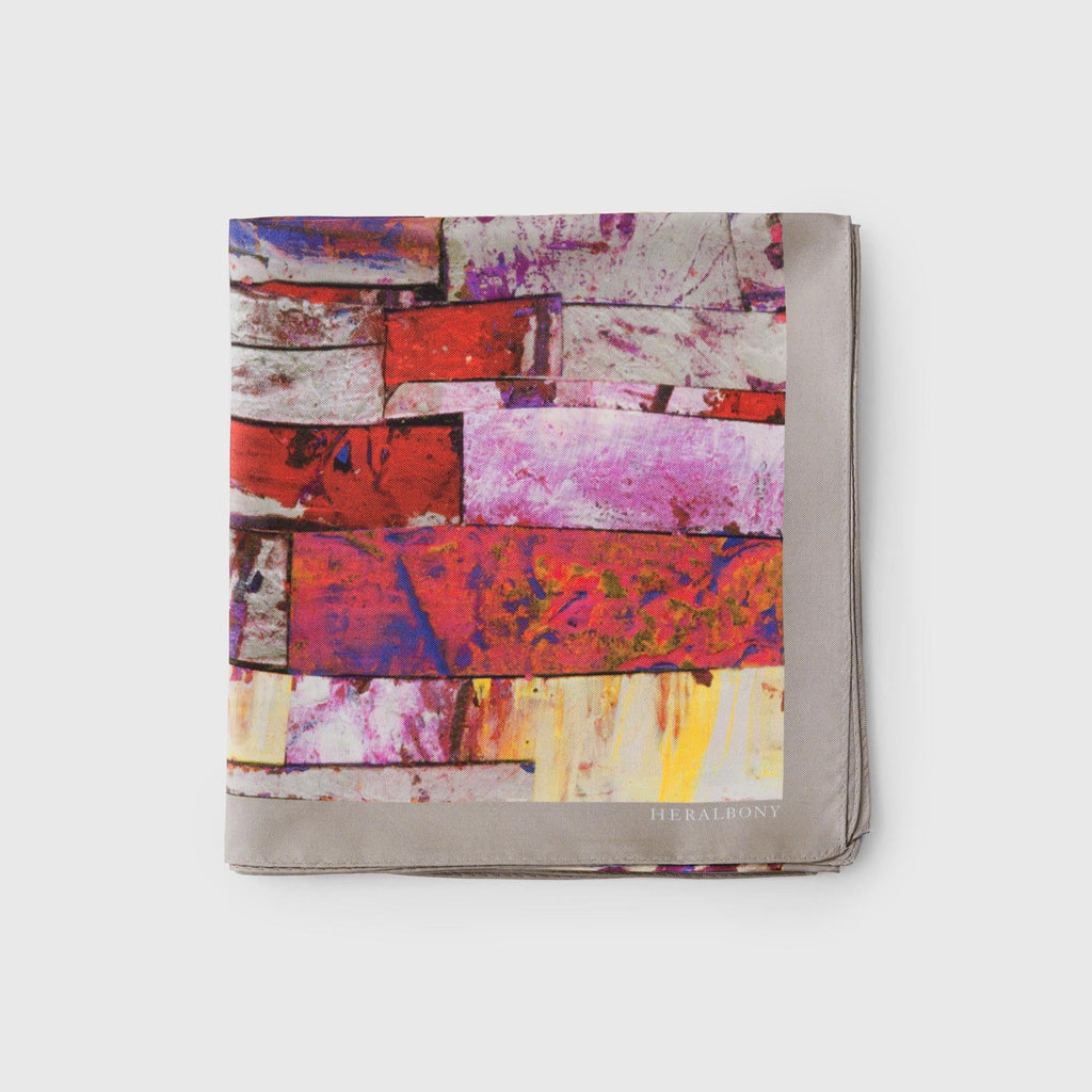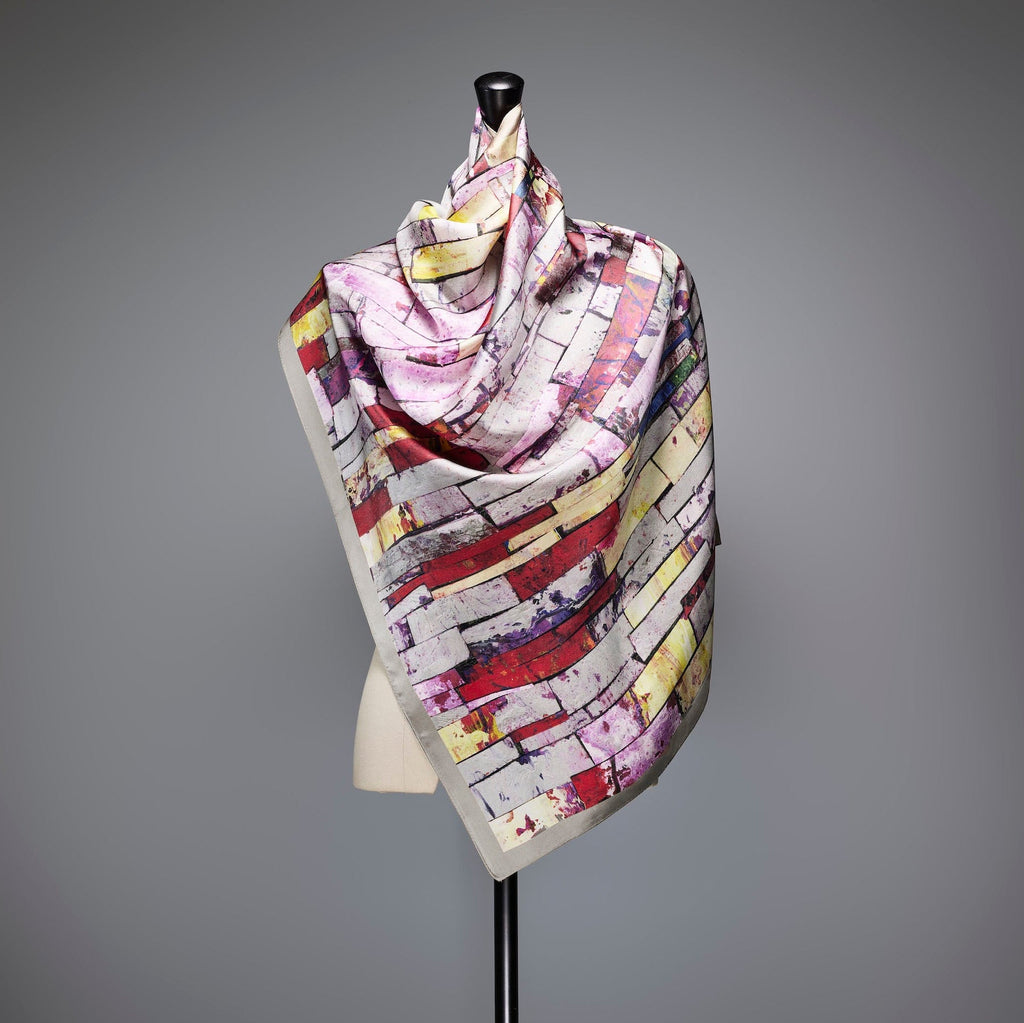 異彩作家の筆使いを忠実に再現するため、シルク素材100%にこだわりました。ずっと触っていたくなるようなハリのあるなめらかな手触りで、いつもの装いに特別な彩りを添えてくれます。