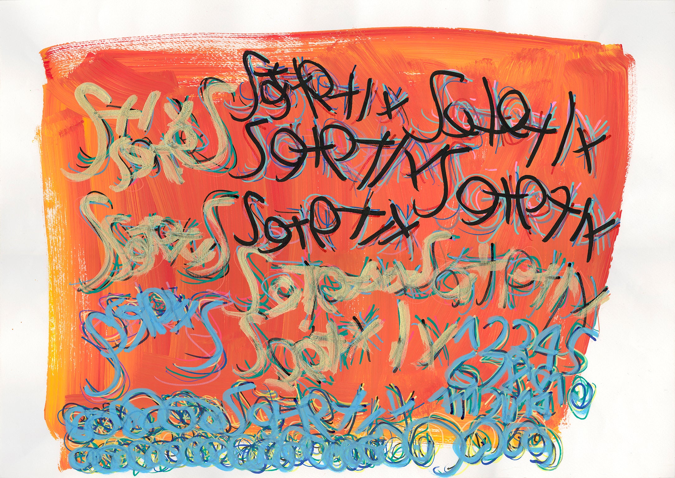 1998年生まれ 滋賀県在住 2017年から『やまなみ工房』に在籍 元々は紙を切って大好きな扇風機のプロペラ作っては眺めることが好きだった彼だが、職員の書く字を真似たり、窓に指で文字をなぞられたりする様子から、英字新聞をお渡しすると画用紙に模写されたことが絵画に取り組まれるきっかけとなった。英字の他数字の作品も多く、描かれるときは、一切の迷いや躊躇は無く、あっという間に描き終えられ、勢いや力強さが英字や数字の書体にも表れている。文字は色を変えて筆やペン、時には指を用いて何度も上からなぞられることが多く、より作品に深みをもたらしている。最近は文字だけでなく、人物や自分の好きなものを絵にされる作品も生まれ、クールな作風と合わせて彼独特の感性が作品にも反映されている。