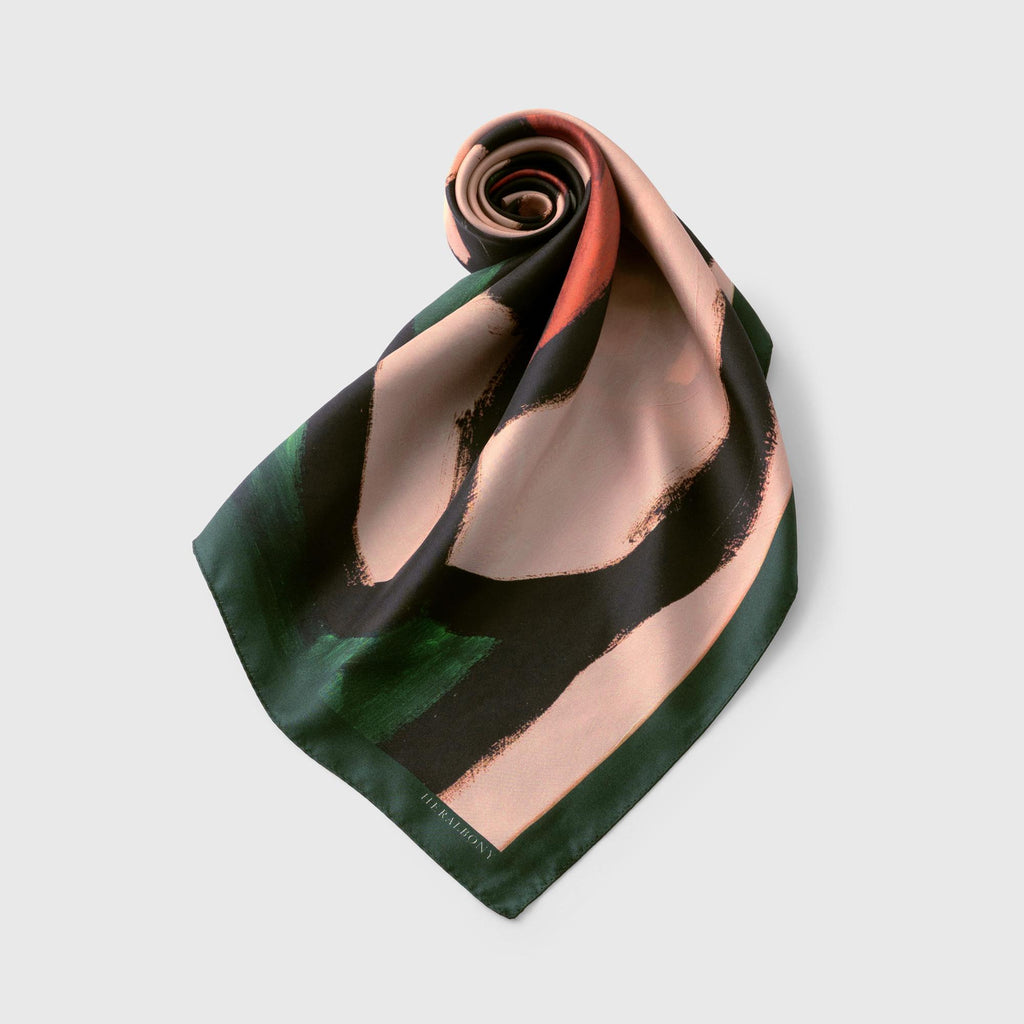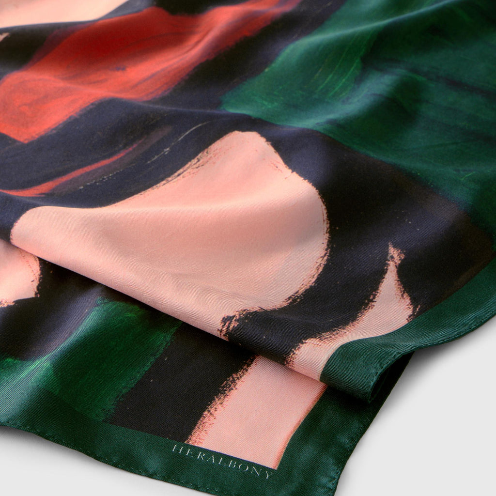 異彩作家の筆使いを忠実に再現するため、シルク素材100%にこだわりました。ずっと触っていたくなるようなハリのあるなめらかな手触りで、いつもの装いに特別な彩りを添えてくれます。