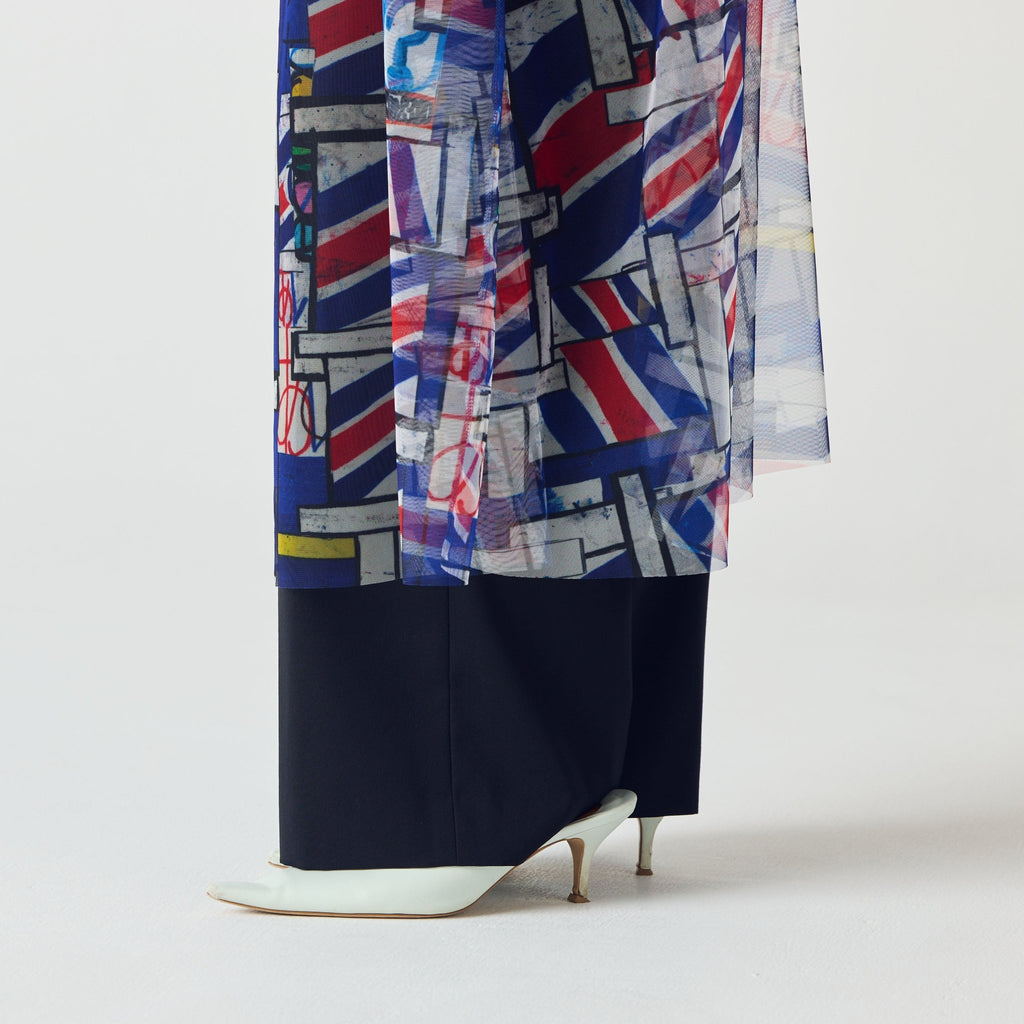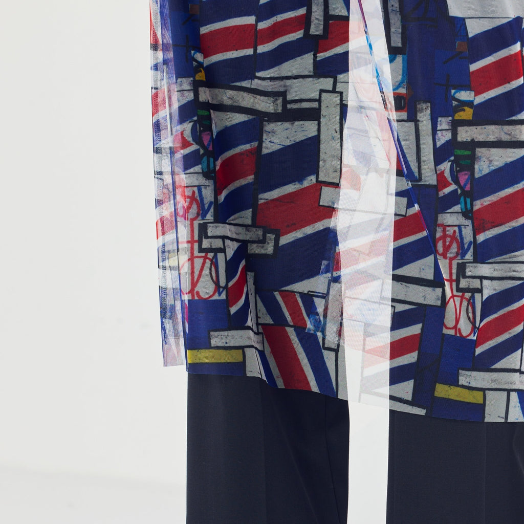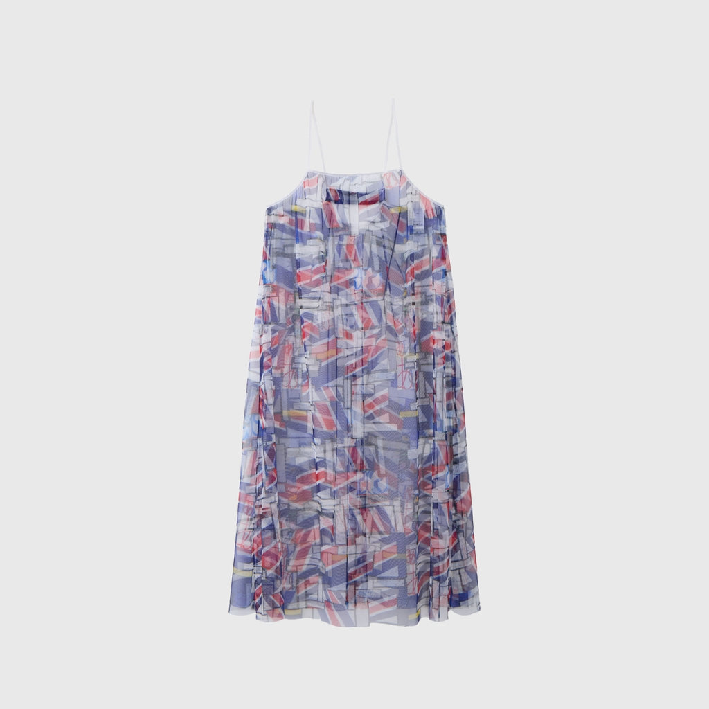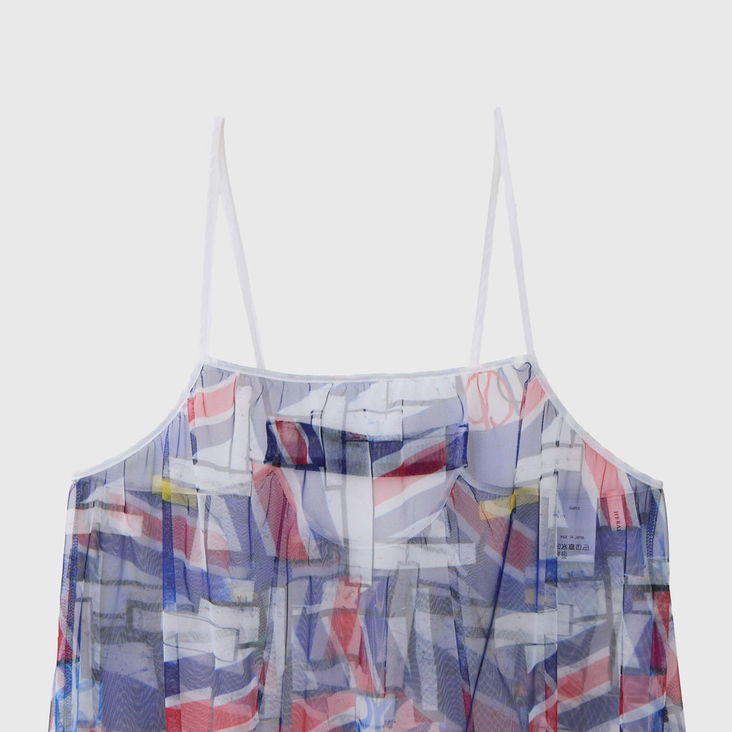 トレンドのチュール素材を、異彩のアートによって唯一無二の個性を持つアイテムに。しなやかなチュールを使用した、異彩のアートが透けるキャミソールワンピースです。