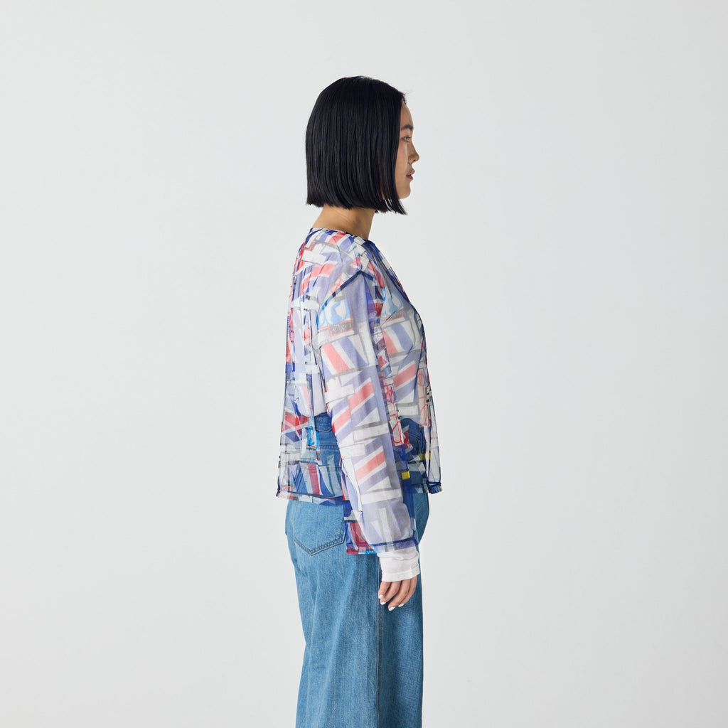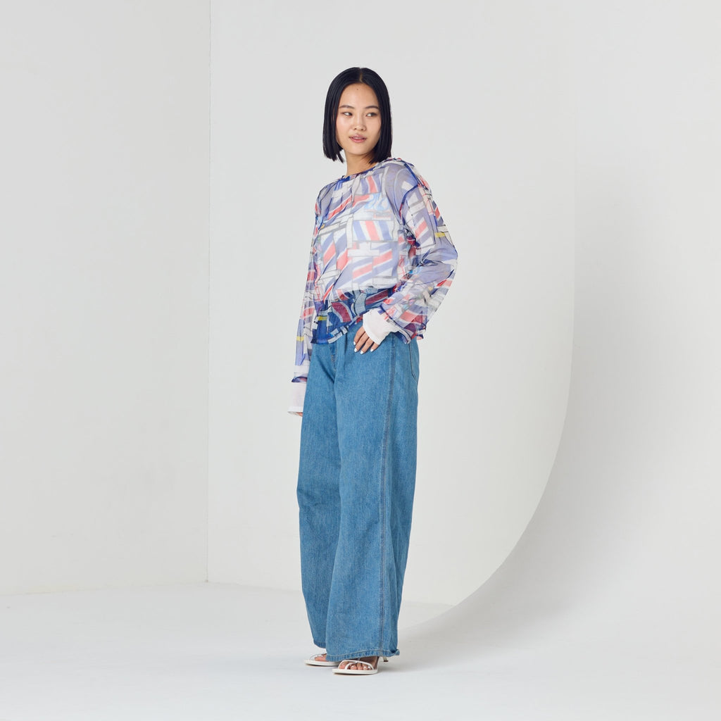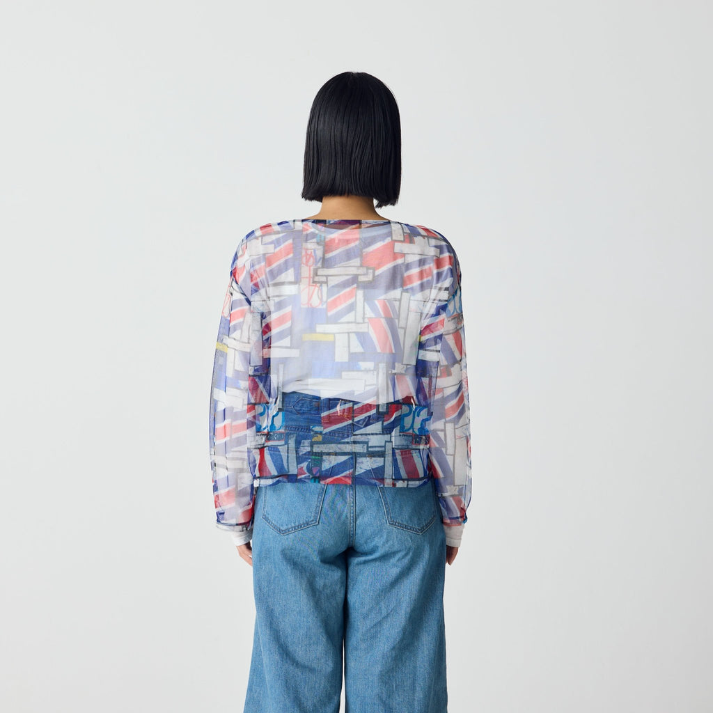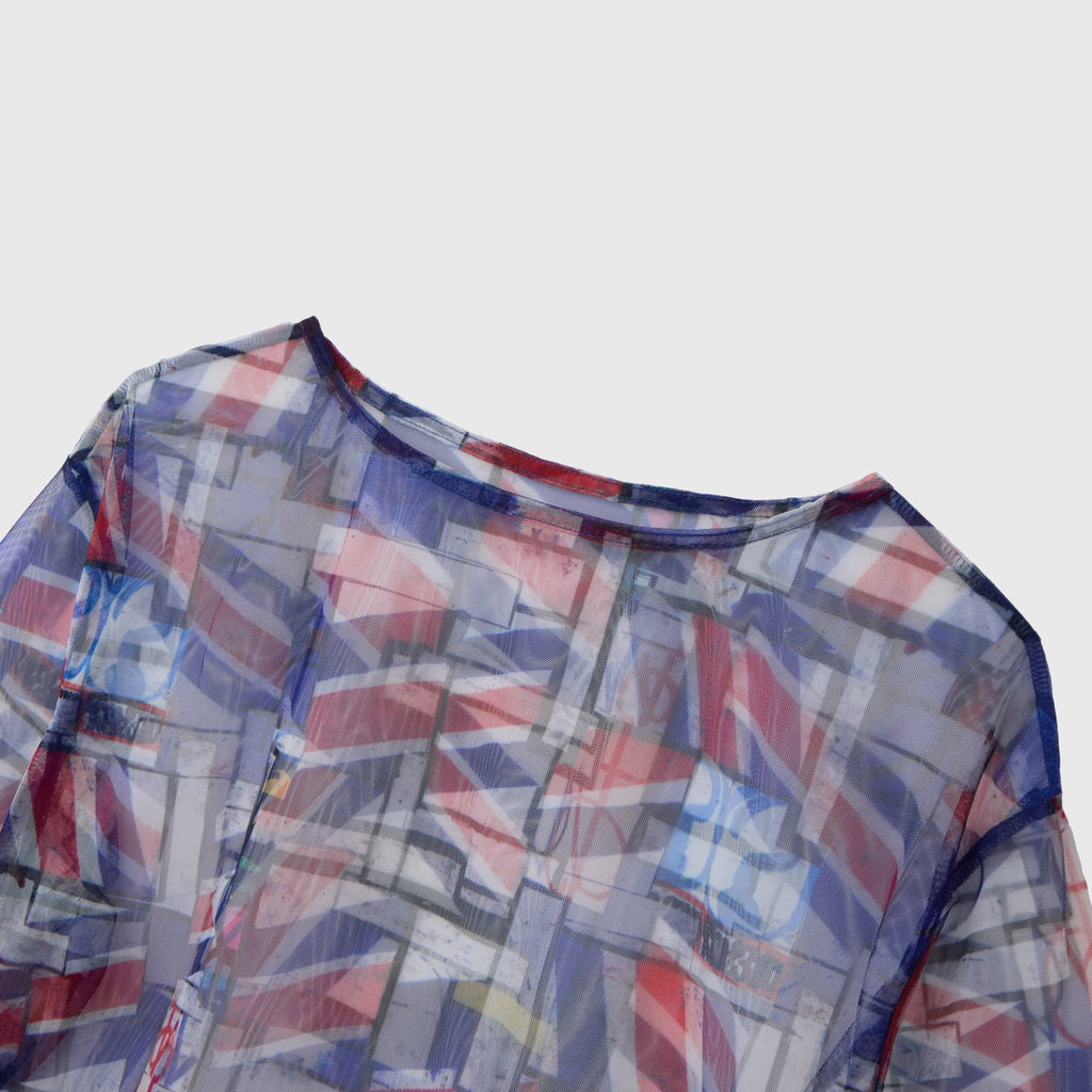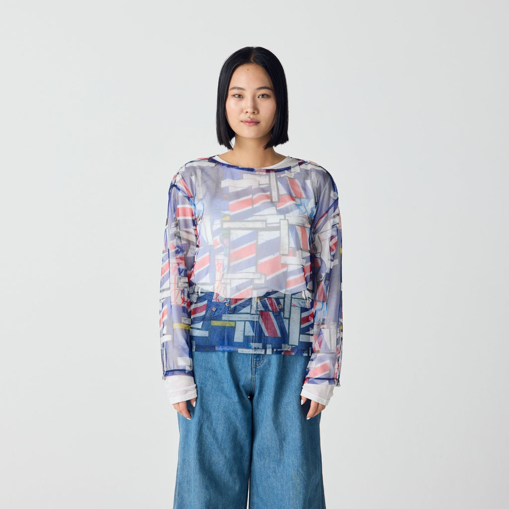 アートが透けるチュール素材のトップス。お手持ちのトップスに一枚重ねるだけで、旬のスタイリングが完成します。秋冬はタートルニットやカットソーに重ねて、春夏はキャミソールやロゴTに重ねるなど、季節を問わずレイヤードスタイルを楽しめます。
